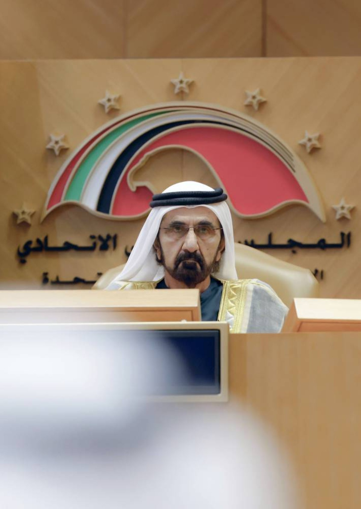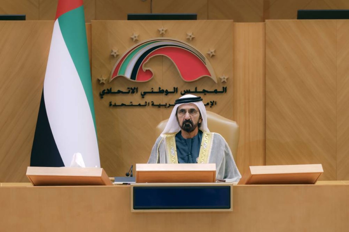 وتفضّل صاحب السموّ الشيخ محمد بن راشد آل مكتوم بافتتاح دور الانعقاد العادي الثالث من الفصل التشريعي الثامن عشر، وقال سموّه: "بسم الله الرحمن الرحيم، إخواني وأخواتي رئيس وأعضاء المجلس الوطني الاتحادي، على بركة الله وتوفيقه، نفتتح مجلسكم الميمون، ونرجو من الله -عزّ وجلّ- أن يكون افتتاح خير وبركة للعباد والبلاد، والسلام عليكم ورحمة الله وبركاته".