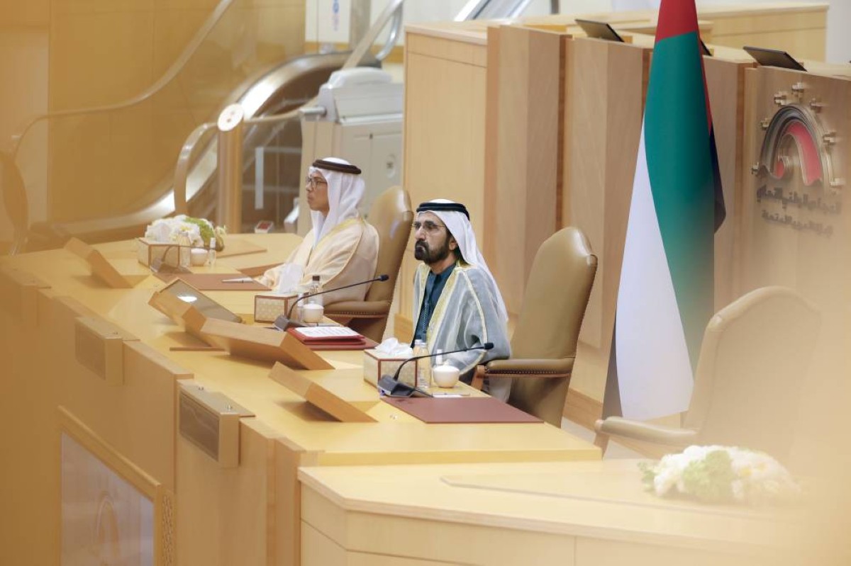 نيابةً عن صاحب السموّ الشيخ محمد بن زايد آل نهيان، رئيس الدولة، حفظه الله، افتتح صاحب السموّ الشيخ محمد بن راشد آل مكتوم، نائب رئيس الدولة رئيس مجلس الوزراء حاكم دبي، رعاه الله، بحضور سموّ الشيخ منصور بن زايد آل نهيان، نائب رئيس الدولة نائب رئيس مجلس الوزراء رئيس ديوان الرئاسة، اليوم (الاثنين) دور الانعقاد العادي الثالث من الفصل التشريعي الثامن عشر للمجلس الوطني الاتحادي.