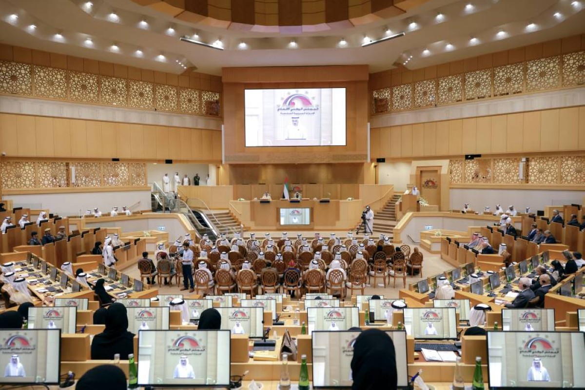 عقب ذلك، رُفعت الجلسة لوداع صاحب السموّ الشيخ محمد بن راشد آل مكتوم، وسموّ الشيخ منصور بن زايد آل نهيان، وتم التقاط صورة جماعية لسموّهما وسموّ أولياء العهود ونوّاب الحُكّام مع معالي رئيس المجلس الوطني الاتحادي وأعضاء المجلس.