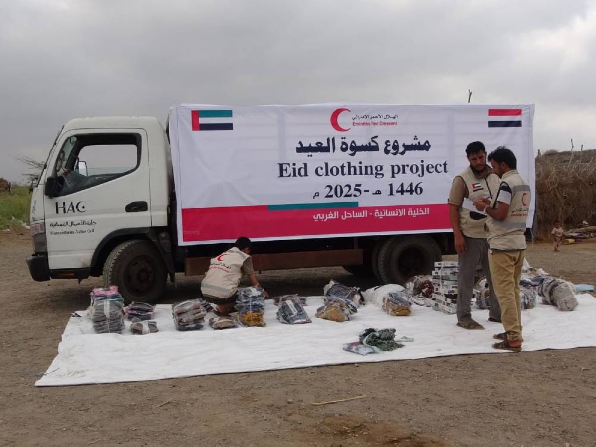 الإمارات"الهلال الأحمر" تدعم مشروع كسوة العيد في الحديدة وتعز باليمنوام نفذت خلية الأعمال الإنسانية "HAC"، بدعم من هيئة الهلال الأحمر الإماراتي، مشروع كسوة العيد للعام الخامس على التوالي في محافظتي الحديدة وتعز. ويستهدف المشروع تقديم كسوة العيد لـ35 ألف أسرة من الفقراء والمرضى والأيتام والنازحين في المحافظتين.