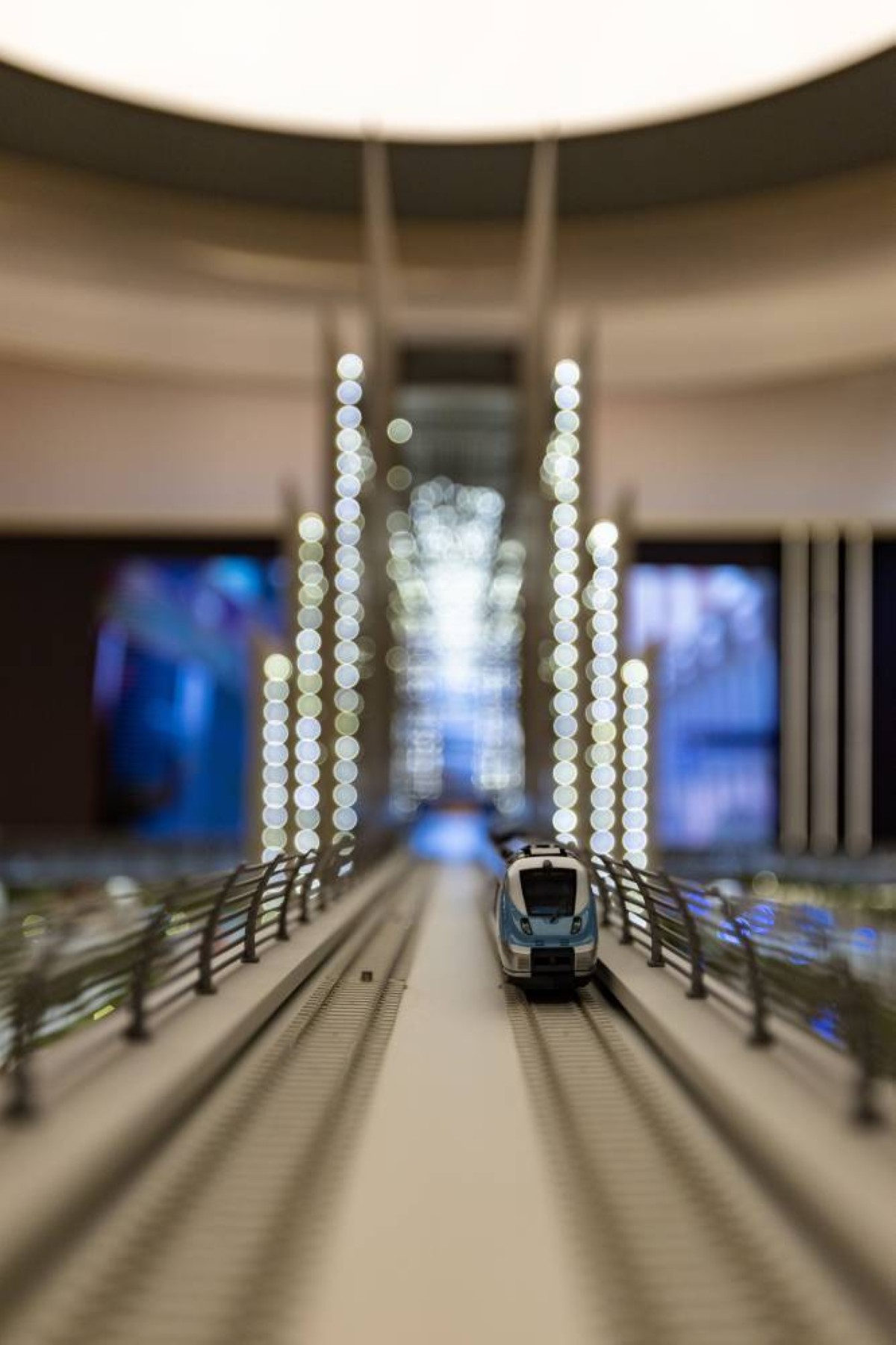 واطلع صاحب السمو الشيخ محمد بن راشد آل مكتوم على المجسم الضخم للمحطة الأيقونية "إعمار العقارية"، واستمع لشرح من معالي مطر الطاير، عن المحطة وهي أعلى محطة مترو في العالم بارتفاع 74 متر، وهي معلم حضاري يضاف للمعالم الحضارية في إمارة دبي، وتُظهر رؤية الإمارة باعتبارها بوابةً للمستقبل، وتشكل حضوراً بصرياً ينسجم مع النسيج العمراني في المنطقة، وترتقي بمفهوم صناعة المكان، ويجعل من المحطة وجهة رئيسة لمستخدمي الخط الأزرق، كما توفر فرصاً تجارية واستثمارية متكاملة.