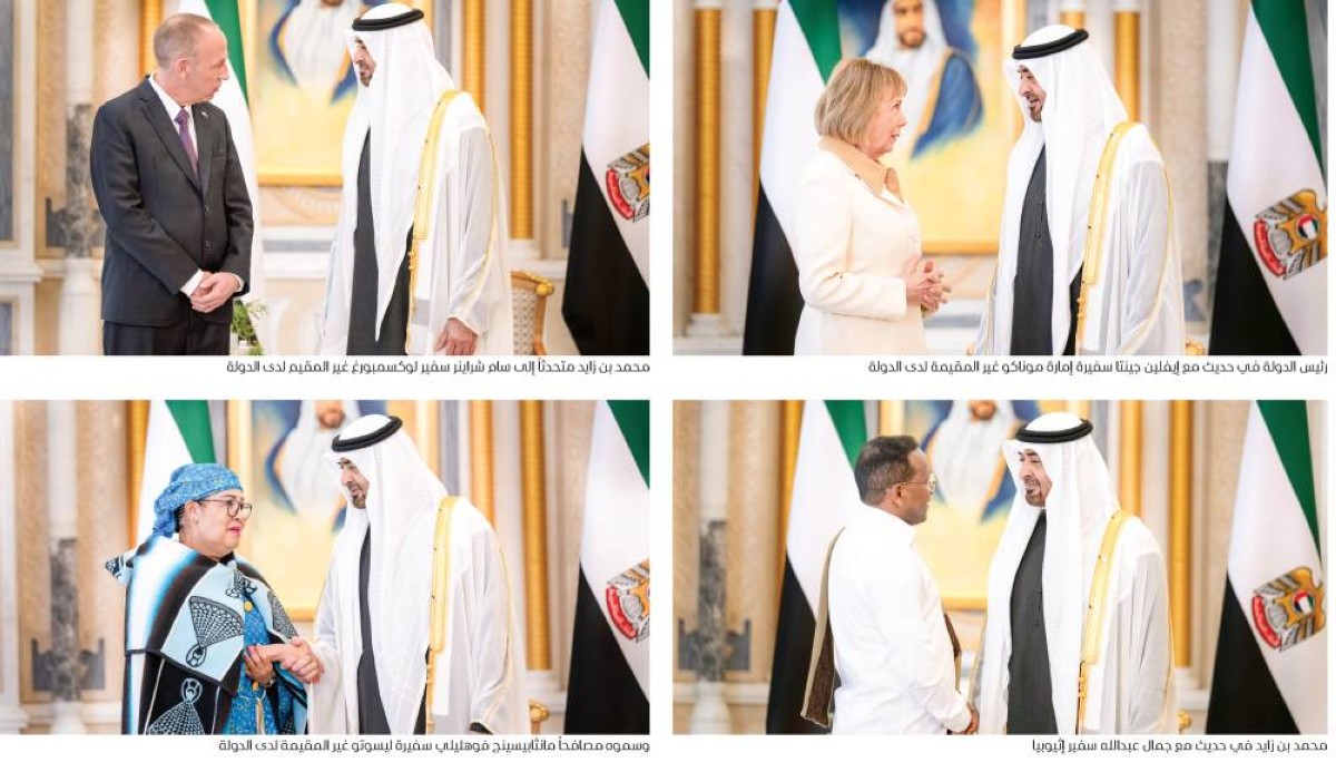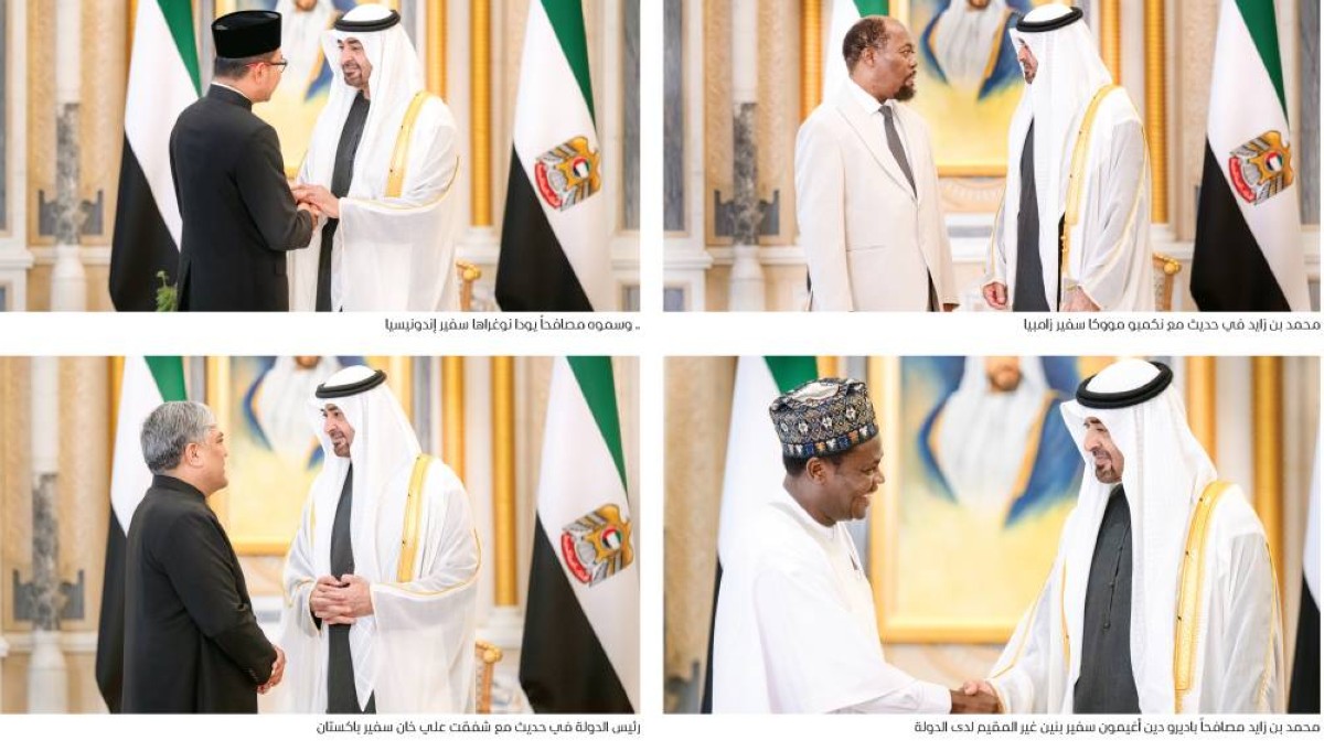 جاء ذلك خلال تسلم سموه، أمس، أوراق اعتماد سفراء جدد لعدد من الدول الشقيقة والصديقة المعينين لدى الدولة، بحضور سمو الشيخ منصور بن زايد آل نهيان، نائب رئيس الدولة، نائب رئيس مجلس الوزراء، رئيس ديوان الرئاسة.
