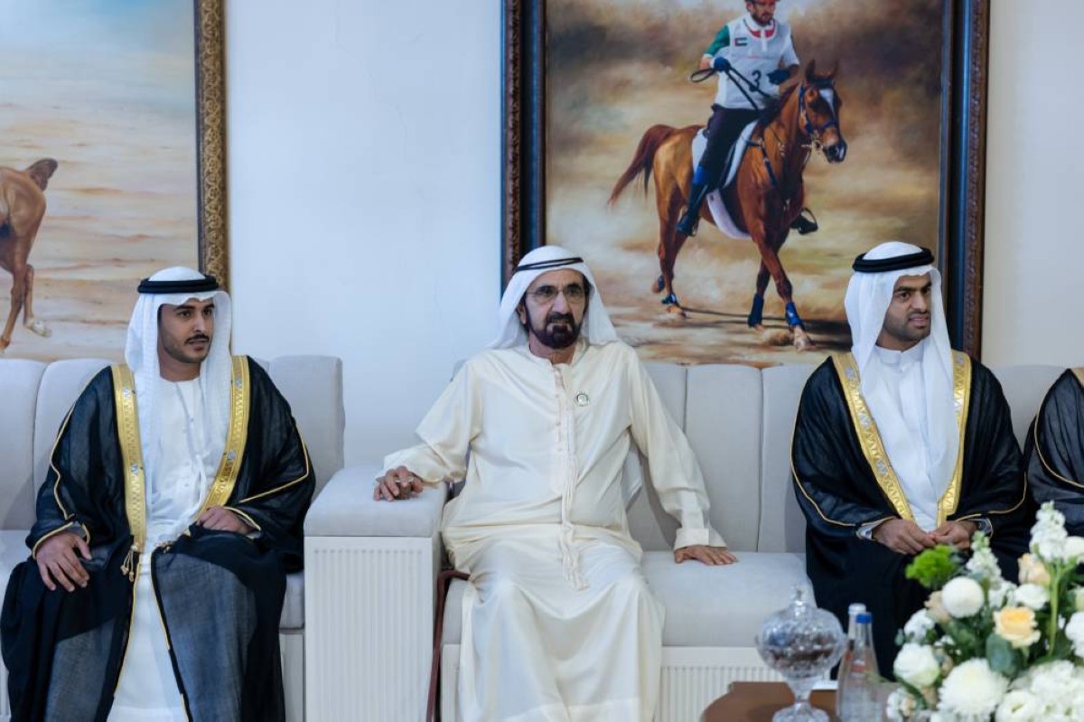 محمد بن راشد يرافقه حمدان ومكتوم بن محمد يحضر أفراح بن غديّر والكتبي