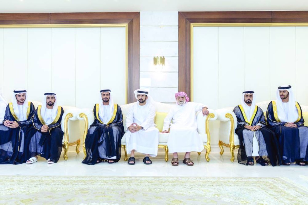 حضر صاحب السمو الشيخ محمد بن راشد آل مكتوم نائب رئيس الدولة رئيس مجلس الوزراء حاكم دبي "رعاه الله"، يرافقه سمو الشيخ مكتوم بن محمد بن راشد آل مكتوم النائب الأول لحاكم دبي، نائب رئيس مجلس الوزراء، وزير المالية، حفل الاستقبال الذي أقامه اليوم في دبي، خليفة عبيد بن حميدان الفلاسي ومحمد عبيد بن حميدان الفلاسي وعلي خليفة بن حميدان الفلاسي بمناسبة زفاف أنجالهم أحمد خليفة عبيد بن حميدان الفلاسي على كريمة عبدالله علي بن حميدان الفلاسي، وعبيد خليفة عبيد بن حميدان الفلاسي على كريمة أحمد عبدالله بالرفيعة الفلاسي، وعبيد محمد عبيد بن حميدان الفلاسي على كريمة راشد محمد بن حميدان الفلاسي، وأحمد علي خليفة بن حميدان الفلاسي على كريمة أحمد علي بن حميدان الفلاسي، وحميد علي خليفة بن حميدان الفلاسي على كريمة خليفة عبيد بن حميدان الفلاسي.