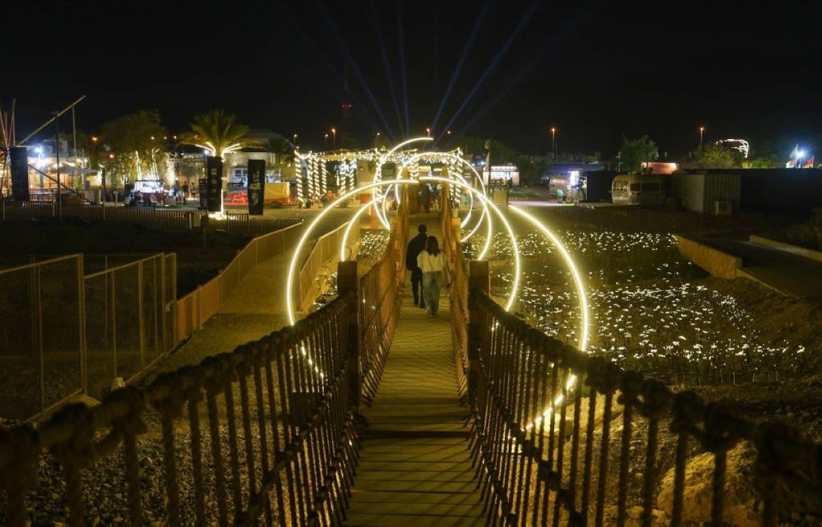 هذه الأجواء المتناغمة كفيلة بأن تمنح الزائر إحساسا بأنه يتحرك داخل فضاء مختلف، فضاء يبتعد قليلا عن الواقع ويقترب أكثر من مشهد خيالي قد لا يتكرر في أماكن أخرى، وفي ذروة هذا الهدوء الليلي، يأتي صوت الألعاب النارية ليكسر السكون، حيث تنطلق الألوان في السماء على شكل نبضات متتابعة، تتفتح وتختفي في لحظات خاطفة، تنثر هذه الانفجارات الضوئية أزهارا من النور فوق الوديان، بينما تتفاعل الجبال مع العروض الضوئية التي تسقط ألوانها على تضاريسها، فتمنحها حالة من الحيوية البصرية التي تزداد تأثيرا مع كل ومضة.