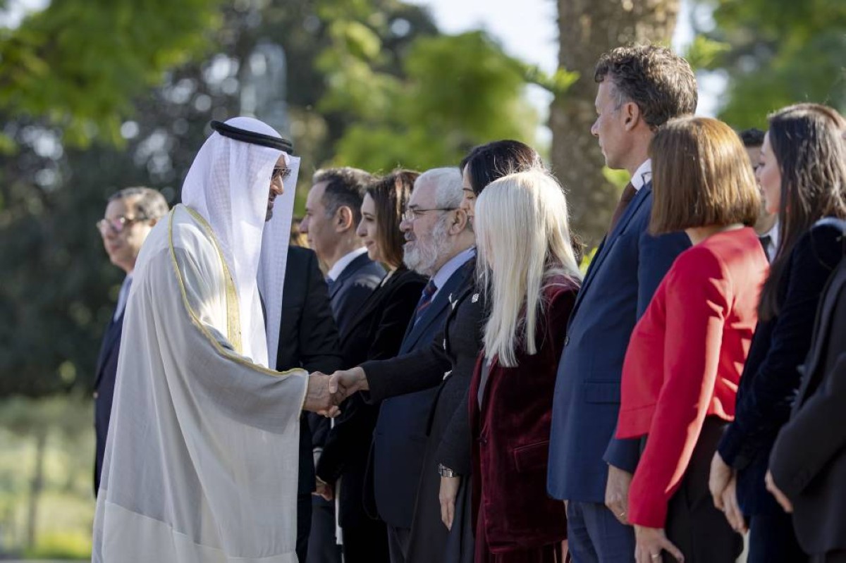 وصافح سموه مستقبليه من الوزراء وكبار المسؤولين في قبرص..كما صافح الرئيس القبرصي الوفد المرافق لصاحب السمو رئيس الدولة الذي يضم معالي الشيخ محمد بن حمد بن طحنون آل نهيان مستشار صاحب السمو رئيس الدولة وعدداً من الوزراء وكبار المسؤولين في الدولة.