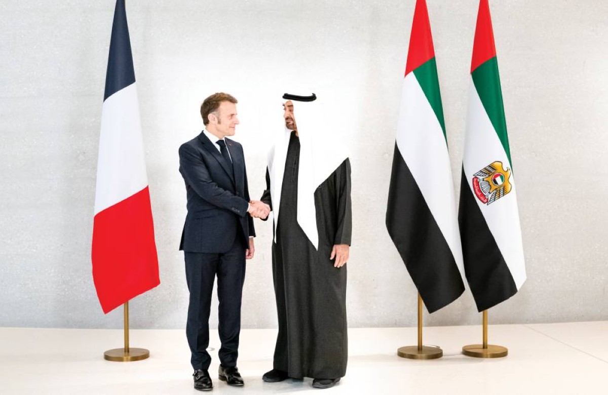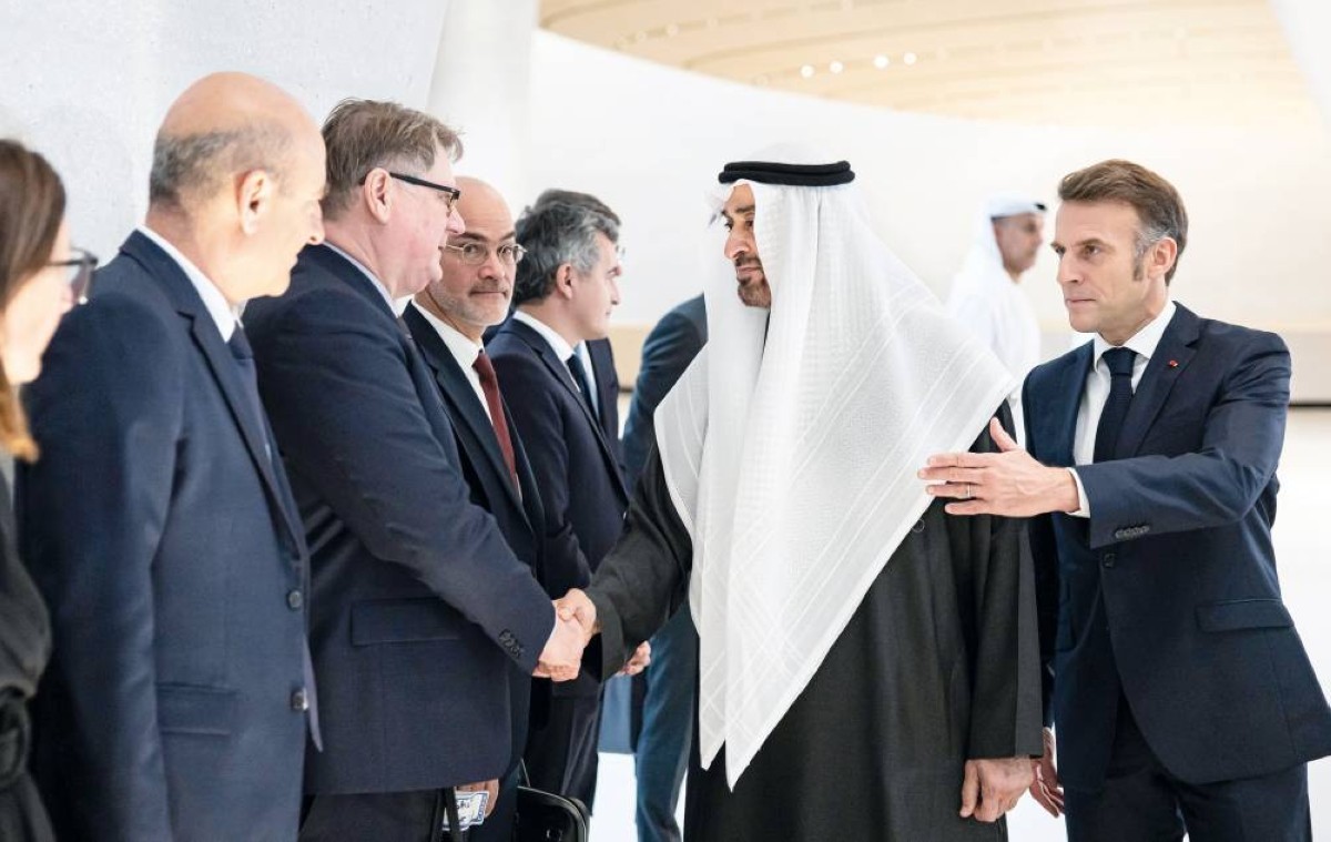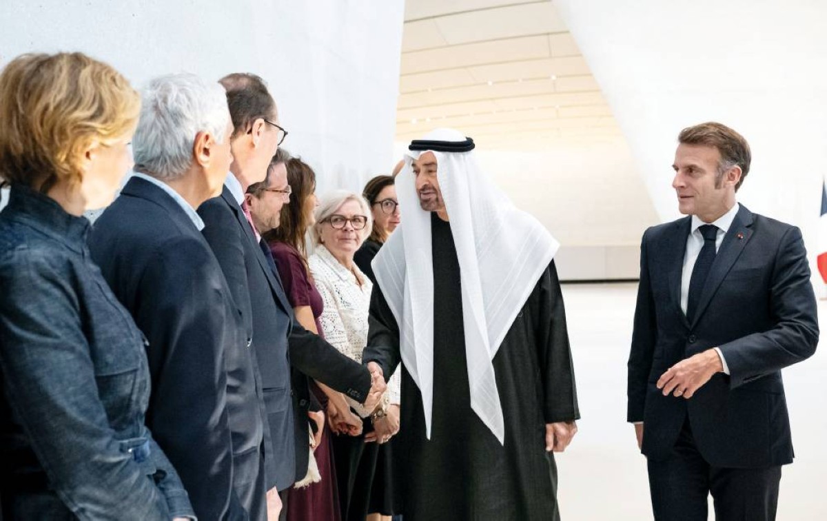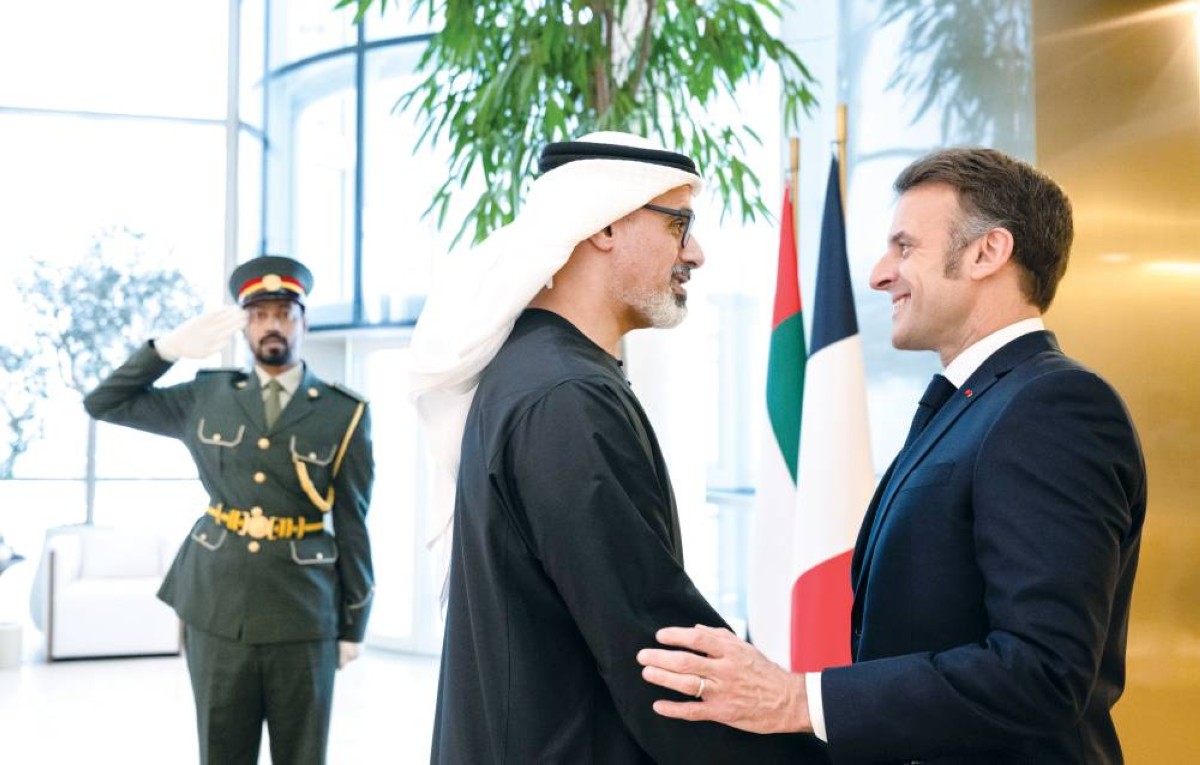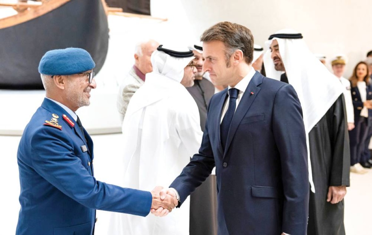 ورحب سموه ــ خلال اللقاء الذي جرى في متحف زايد الوطني في أبوظبي ــ بفخامة الرئيس الفرنسي.. وتبادل معه التهاني بمناسبة قرب حلول العام الجديد متمنيين للبلدين وشعبيهما دوام التقدم والازدهار.