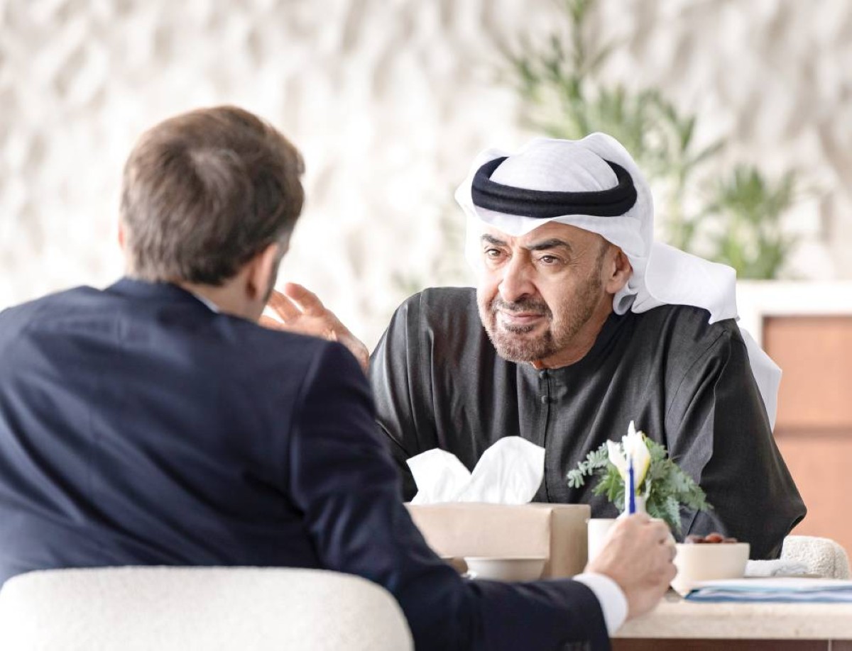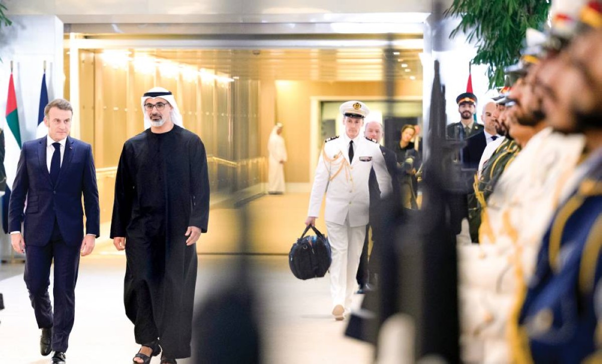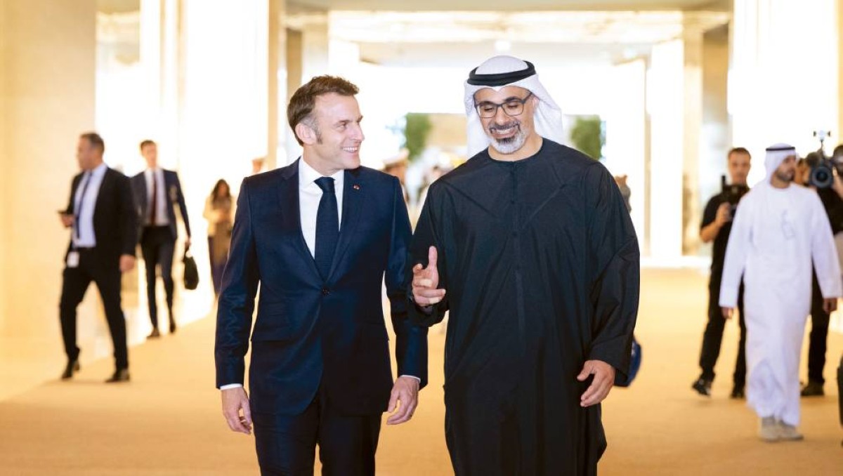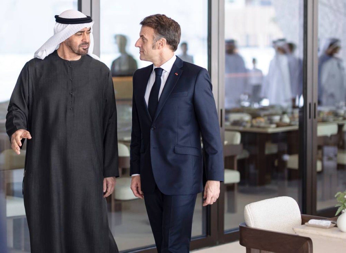 ورحب سموه ــ خلال اللقاء الذي جرى في متحف زايد الوطني في أبوظبي ــ بفخامة الرئيس الفرنسي.. وتبادل معه التهاني بمناسبة قرب حلول العام الجديد متمنيين للبلدين وشعبيهما دوام التقدم والازدهار.