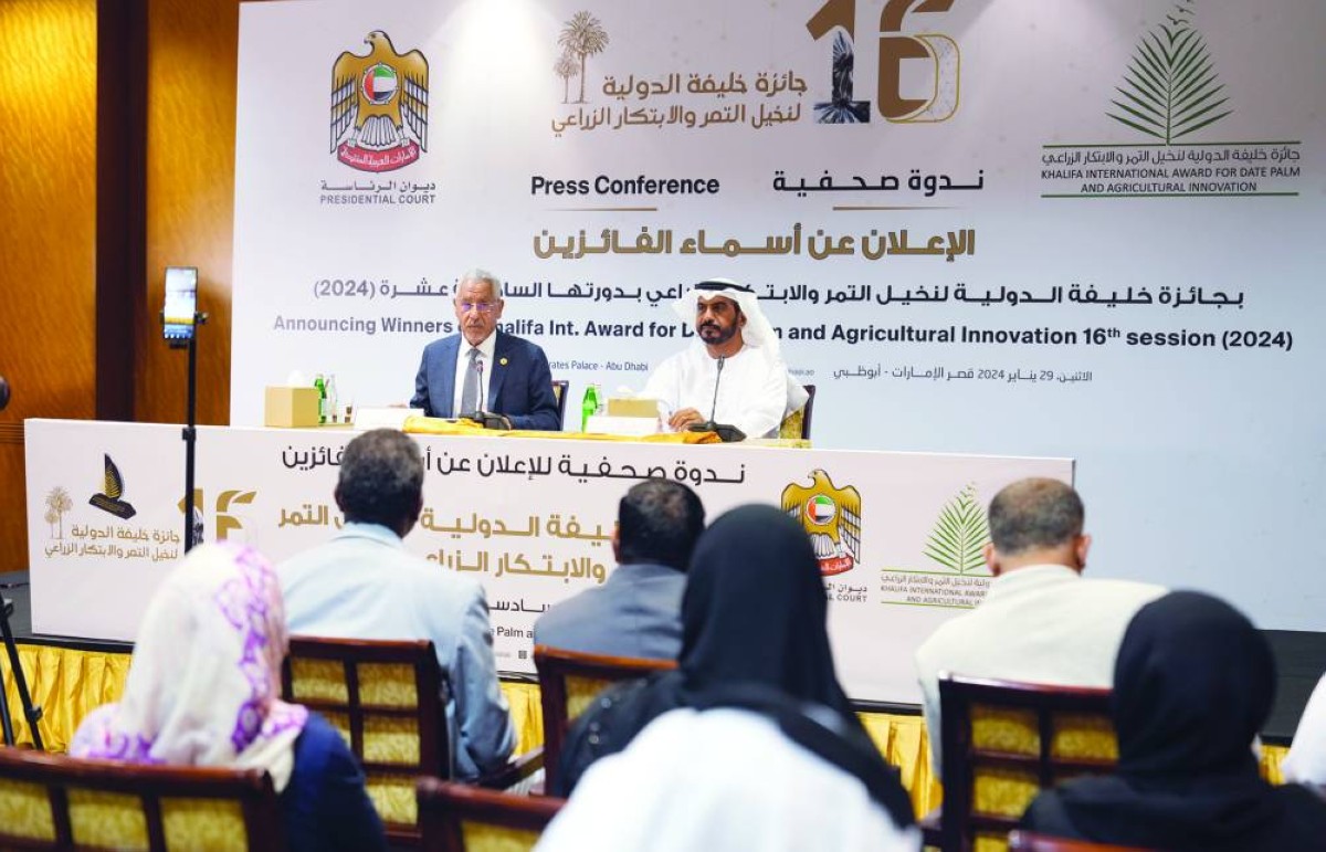 وأعلن أسماء الفائزين الدكتور عبدالوهاب زايد، أمين عام جائزة خليفة الدولية لنخيل التمر والابتكار الزراعي، في كلمته خلال مؤتمر صحافي أمس في قصر الإمارات بأبوظبي.