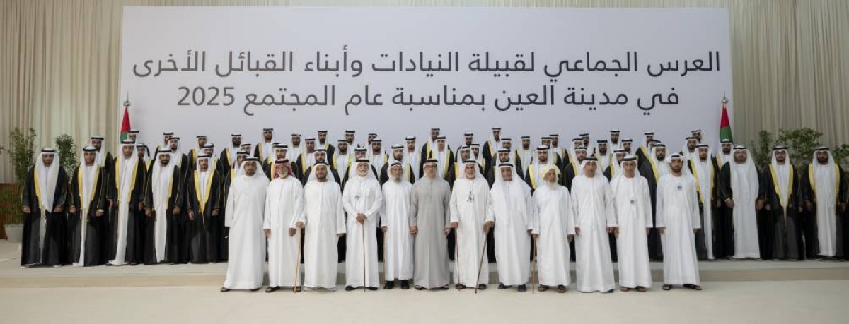 شهد سمو الشيخ منصور بن زايد آل نهيان، نائب رئيس الدولة نائب رئيس مجلس الوزراء رئيس ديوان الرئاسة، مساء أمس، العرس الجماعي الذي نظمته قبيلة النيادات في قاعة الظاهر بمدينة العين، بمشاركة 60 عريساً، وذلك تزامناً مع «عام المجتمع».
