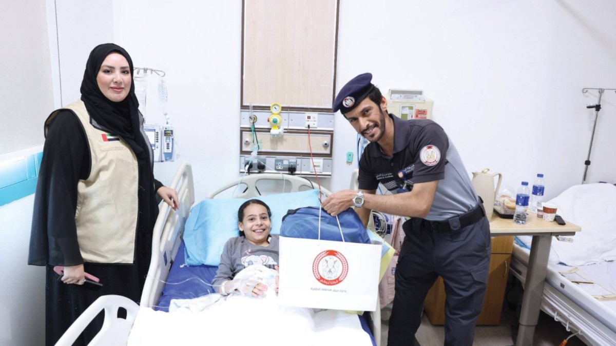 وقدم فريق التوعية والتثقيف المروري في «مرور الظفرة» الهدايا للمرضى وتمنى لهم الشفاء العاجل.