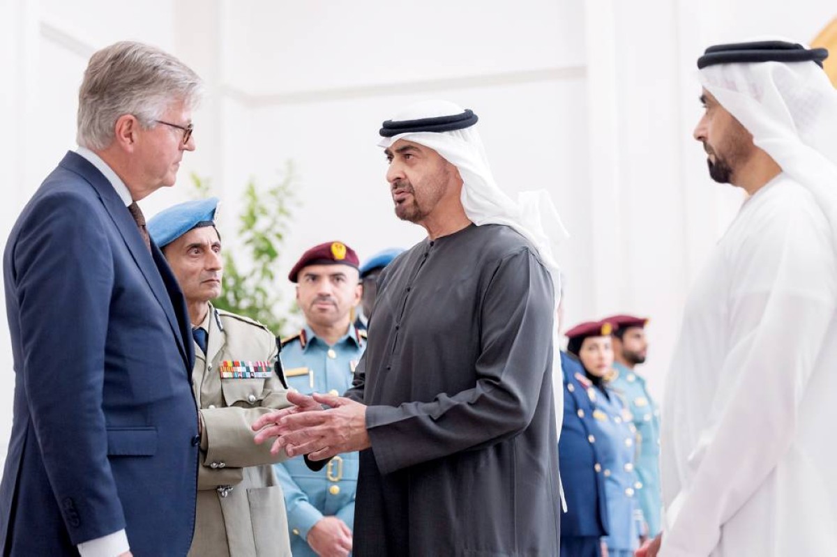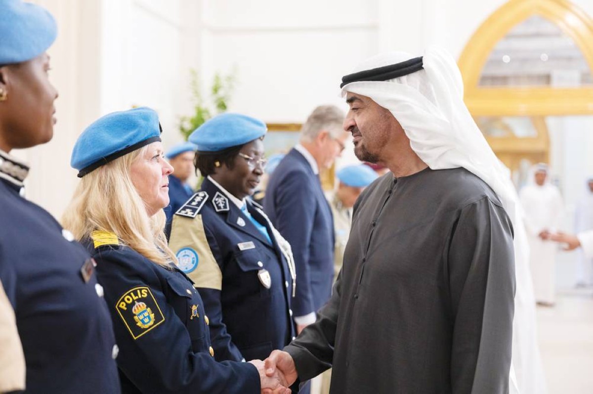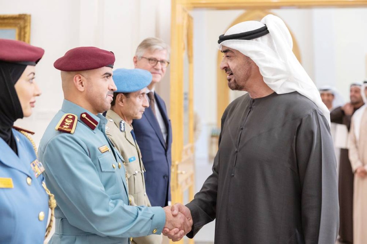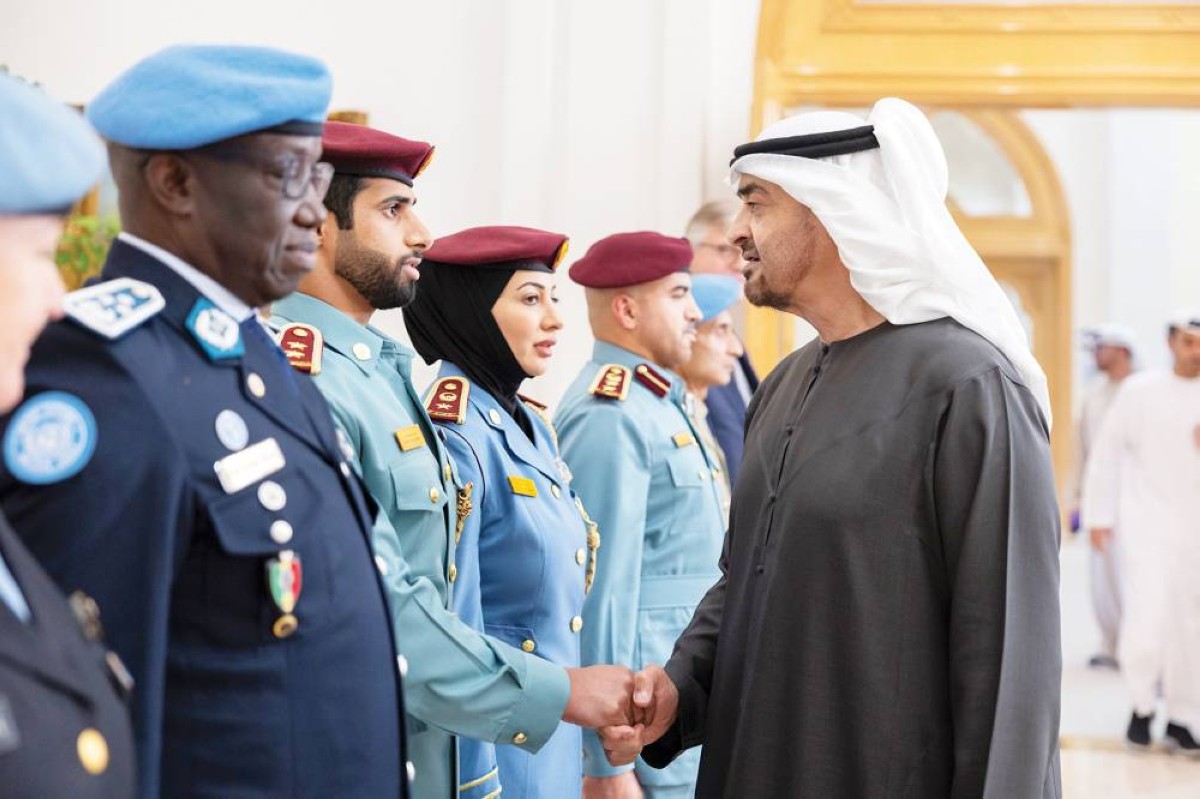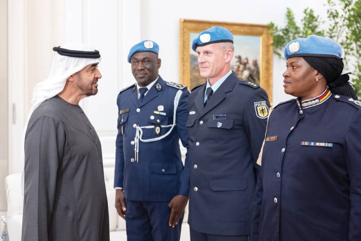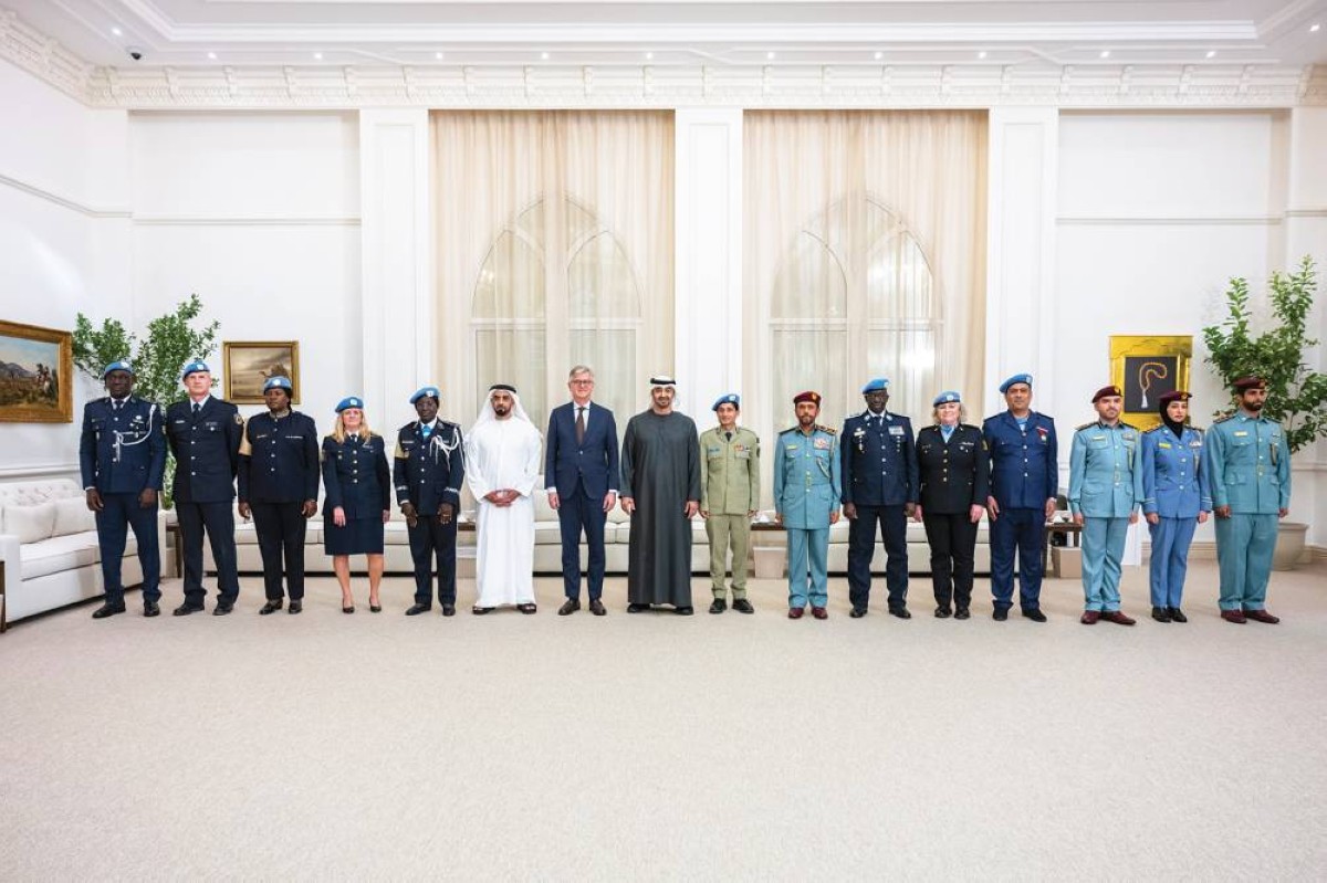 استقبل صاحب السمو الشيخ محمد بن زايد آل نهيان رئيس الدولة، حفظه الله، اليوم، المشاركين في ورشة "عمل أداء شرطة الأمم المتحدة" الثالثة التي تستضيفها وزارة الداخلية في أبوظبي لمدة أربعة أيام يرافقهم الفريق سمو الشيخ سيف بن زايد آل نهيان نائب رئيس مجلس الوزراء وزير الداخلية.