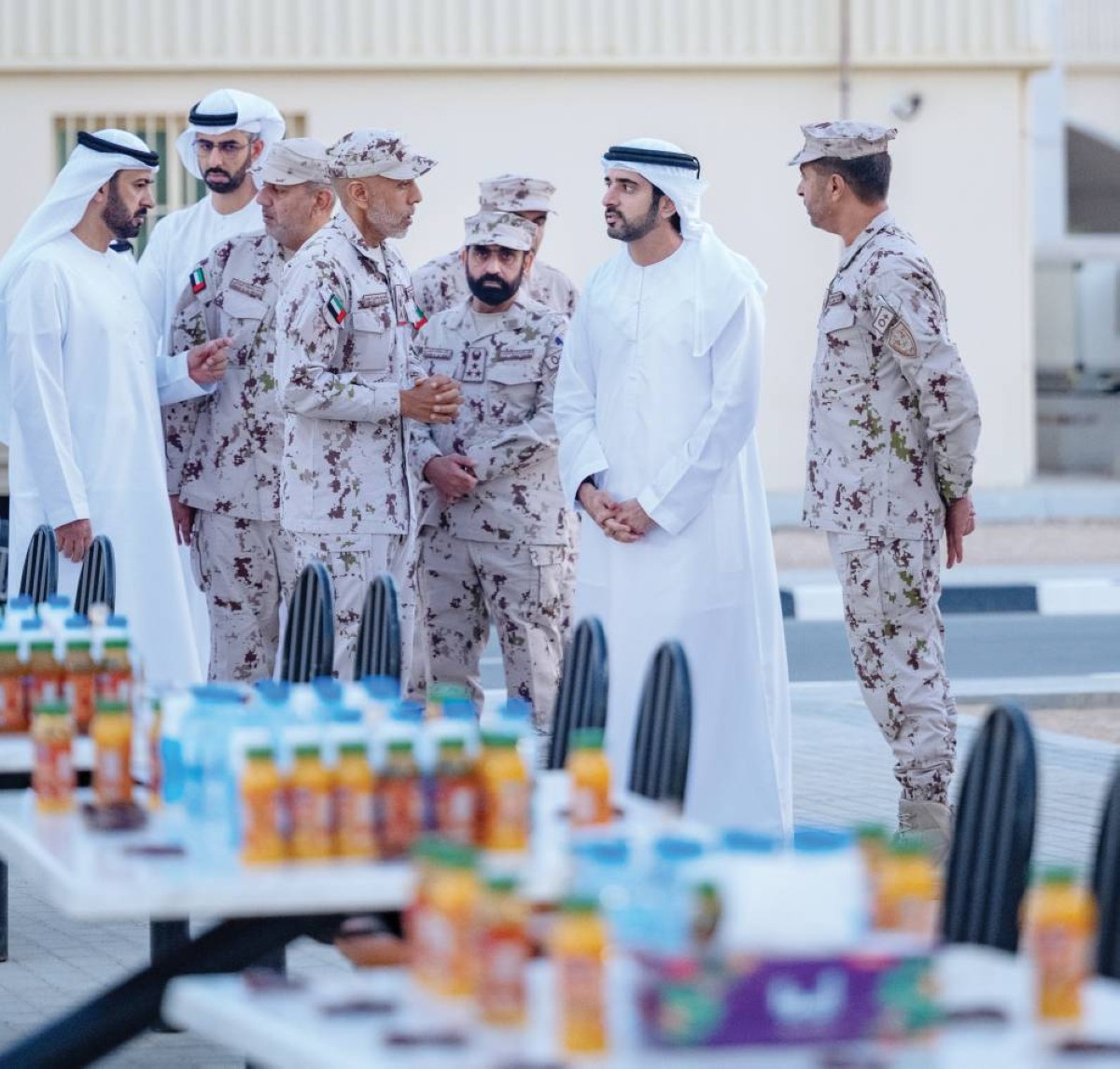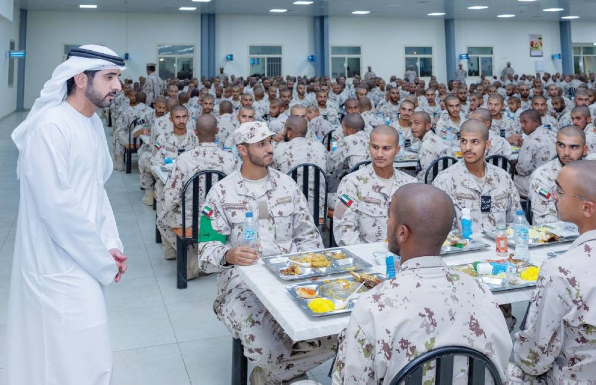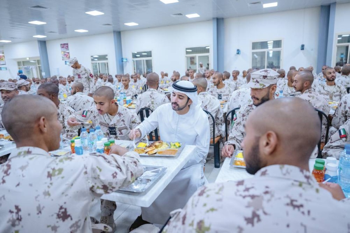 شارك سمو الشيخ حمدان بن محمد بن راشد آل مكتوم، ولي عهد دبي نائب رئيس مجلس الوزراء وزير الدفاع، أمس، مجندي الخدمة الوطنية في مركز تدريب سويحان في أبوظبي، طعام الإفطار، وذلك بحضور اللواء الركن الشيخ أحمد بن طحنون آل نهيان، نائب رئيس أركان القوات المسلحة، إلى جانب عدد من كبار الضباط والمسؤولين.