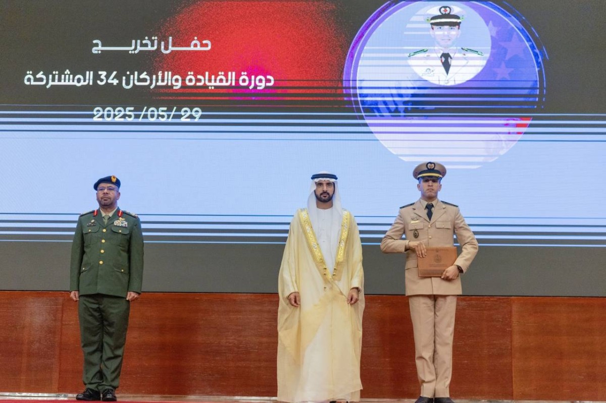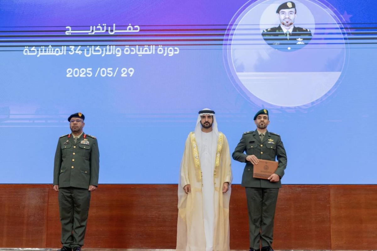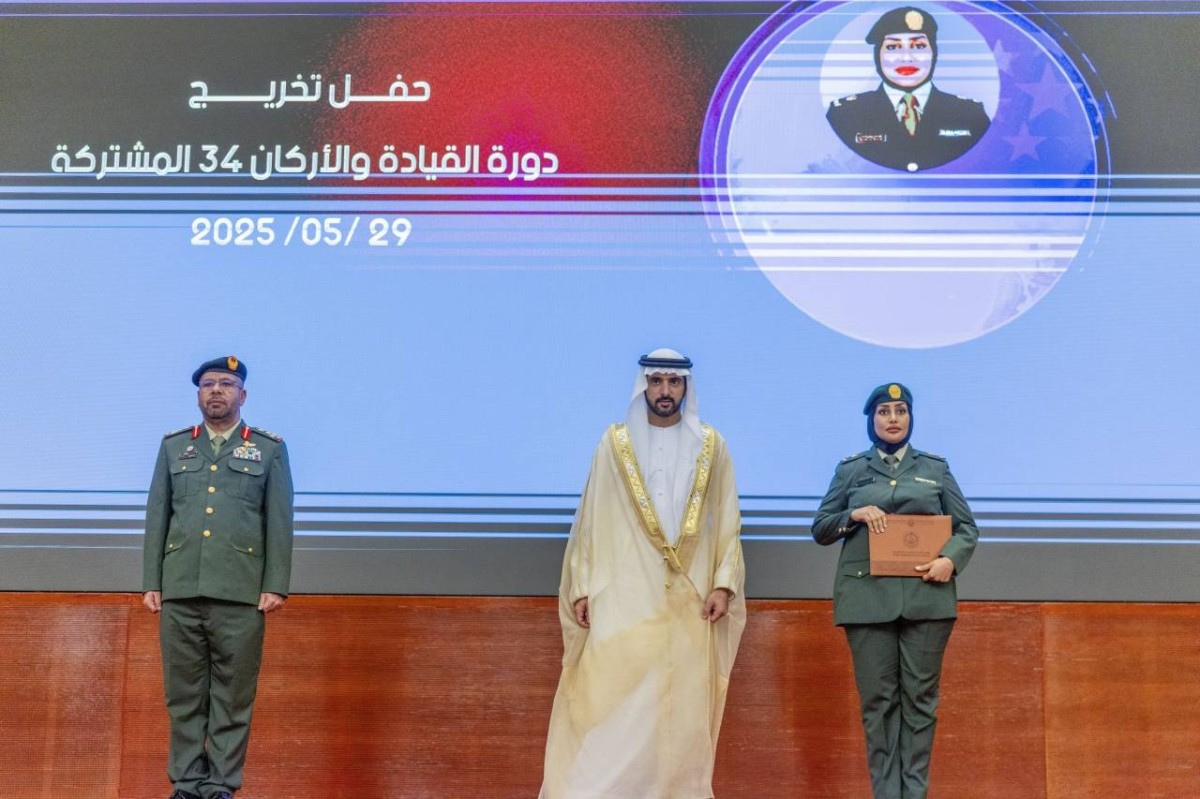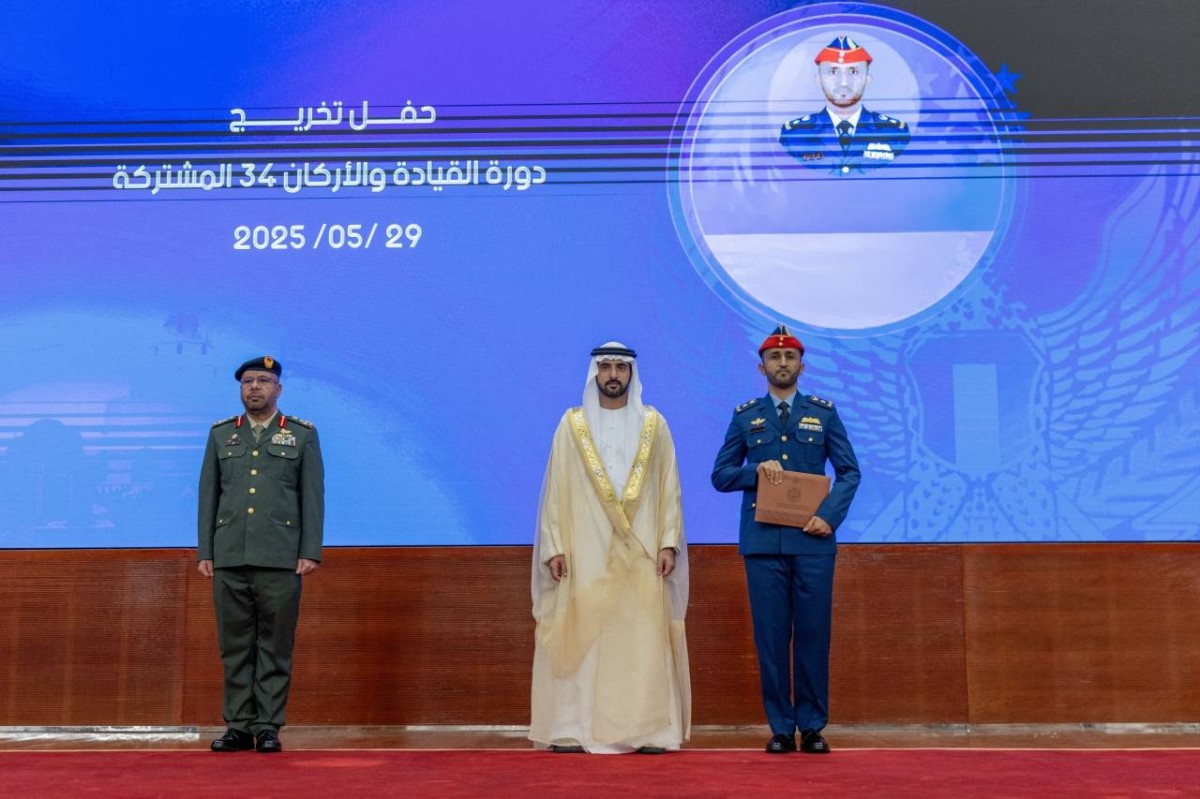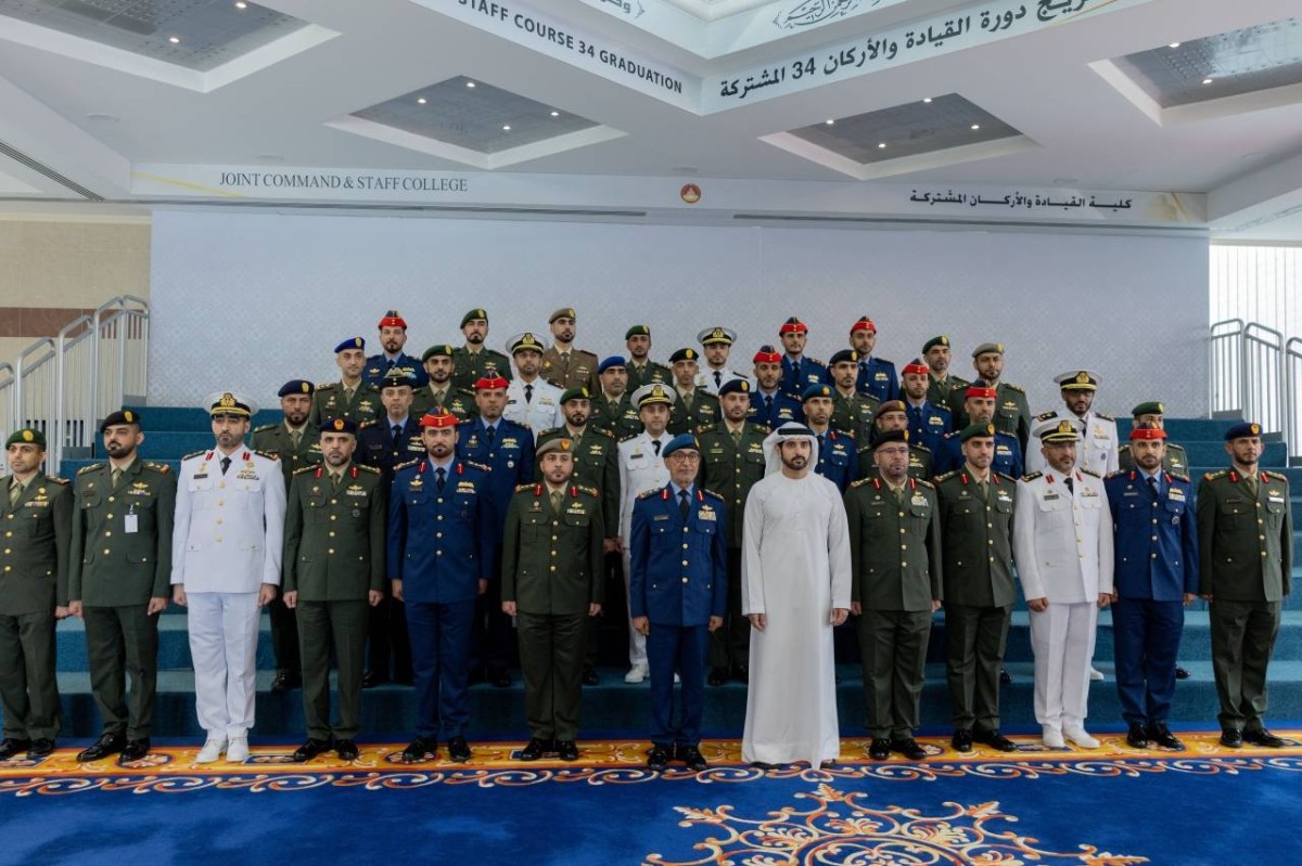 شهد سمو الشيخ حمدان بن محمد بن راشد آل مكتوم، ولي عهد دبي، نائب رئيس مجلس الوزراء وزير الدفاع، حفل تخريج دورة القيادة والأركان 34 المشتركة، الذي أُقيم برعاية سموه أمس في مقر كلية القيادة والأركان المشتركة بأبوظبي.