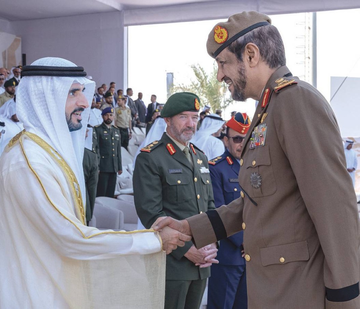 وأكد سموه أن رؤية وتوجيهات صاحب السمو الشيخ محمد بن زايد آل نهيان، رئيس الدولة، حفظه الله، وأخيه صاحب السمو الشيخ محمد بن راشد آل مكتوم، نائب رئيس الدولة رئيس مجلس الوزراء حاكم دبي، رعاه الله، الوصول إلى أرفع درجات الجاهزية للمستقبل، لضمان حسن الاستفادة من كل ما يحمله من فرص تقدم ونماء، وتأكيد القدرة الكاملة على التصدي لما قد يأتي به من أشكال مختلفة من التحديات، هي الأساس الذي تنطلق منه القوات المسلحة في تطوير قدراتها الدفاعية، ورفع كفاءتها الميدانية، سواء على مستوى إعداد الكادر البشري وتزويده بأحدث العلوم العسكرية، وأفضل المهارات التكتيكية والاستراتيجية، أو على صعيد التجهيزات والقدرات والتقنيات الدفاعية الأكثر تطوراً على مستوى العالم.