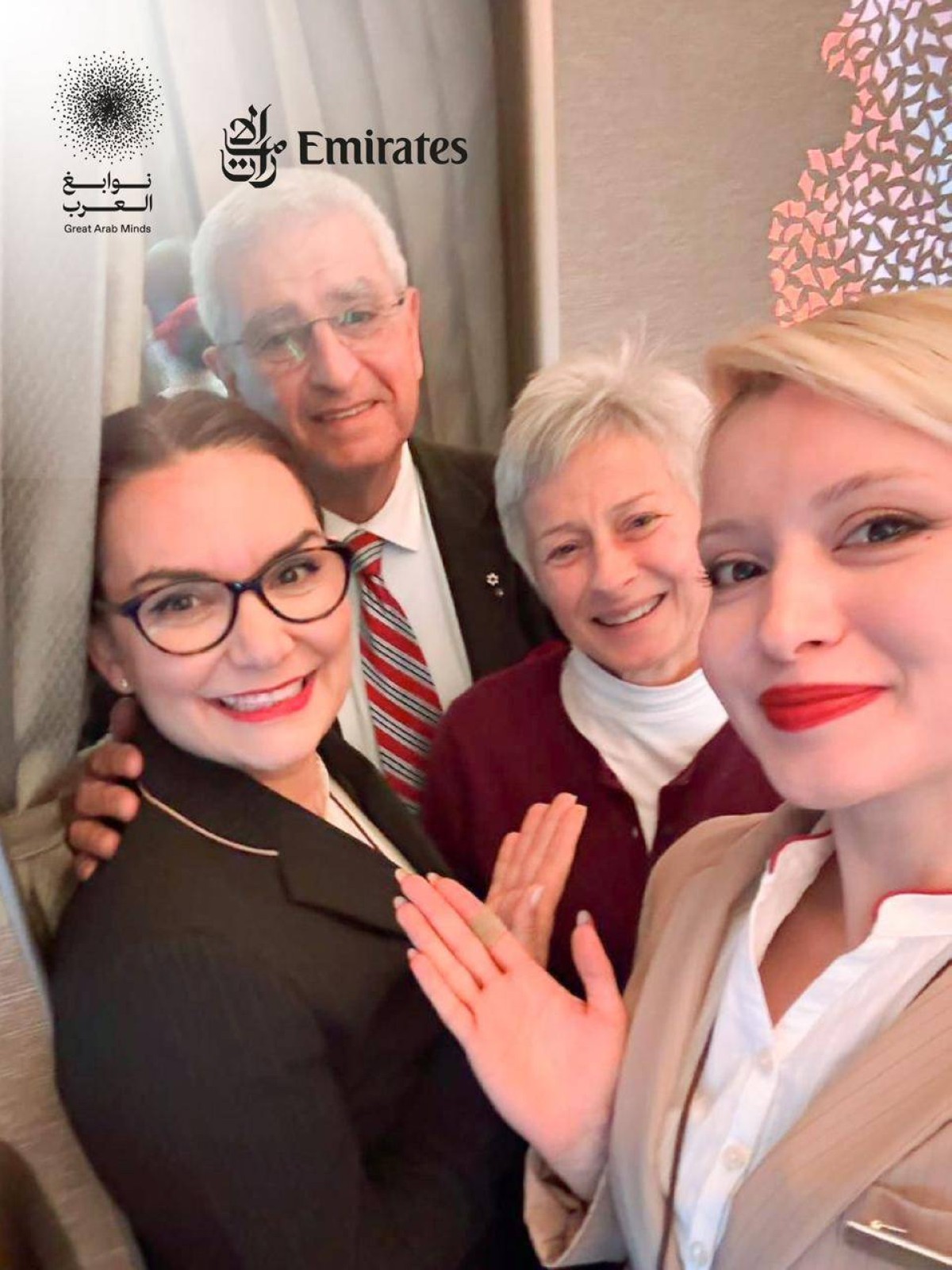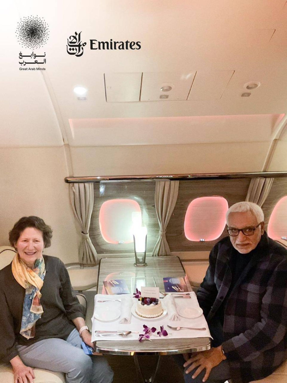بالتزامن مع تكريم صاحب السمو الشيخ محمد بن راشد آل مكتوم، نائب رئيس الدولة رئيس مجلس الوزراء حاكم دبي، رعاه الله، الفائزين الستة بلقب جائزة "نوابغ العرب"، الأكبر عربياً لتقدير العقول العربية المتميزة ذات الإسهامات النوعية في الحضارة الإنسانية، احتفت طيران الإمارات بالفائزين على طريقتها كضيوف متميزين أثناء وعقب رحلاتهم على متن أسطولها الجوي.