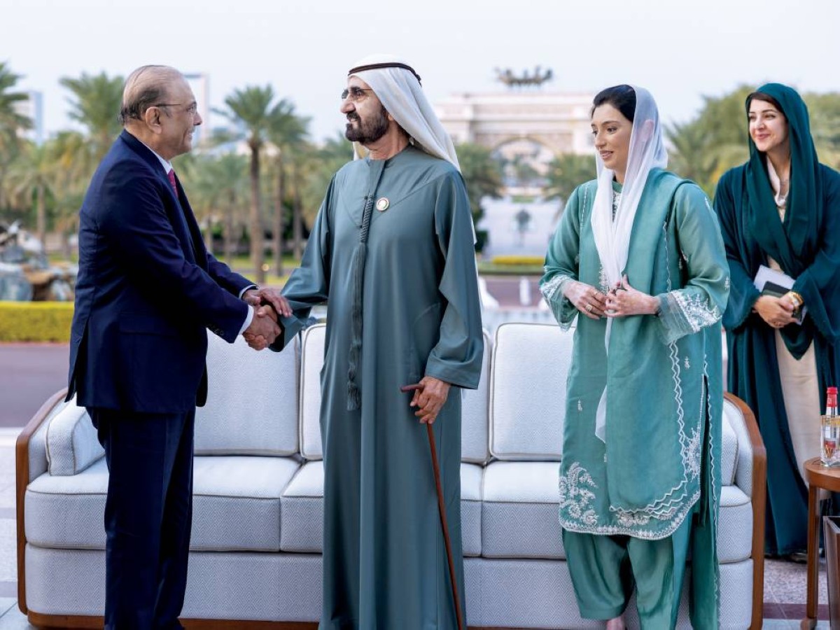 التقى صاحب السمو الشيخ محمد بن راشد آل مكتوم، نائب رئيس الدولة رئيس مجلس الوزراء حاكم دبي، رعاه الله، في قصر زعبيل أمس، آصف علي زرداري، رئيس جمهورية باكستان الإسلامية، بحضور سمو الشيخ حمدان بن محمد بن راشد آل مكتوم، ولي عهد دبي نائب رئيس مجلس الوزراء وزير الدفاع رئيس المجلس التنفيذي لإمارة دبي، وسمو الشيخ مكتوم بن محمد بن راشد آل مكتوم، النائب الأول لحاكم دبي نائب رئيس مجلس الوزراء وزير المالية.