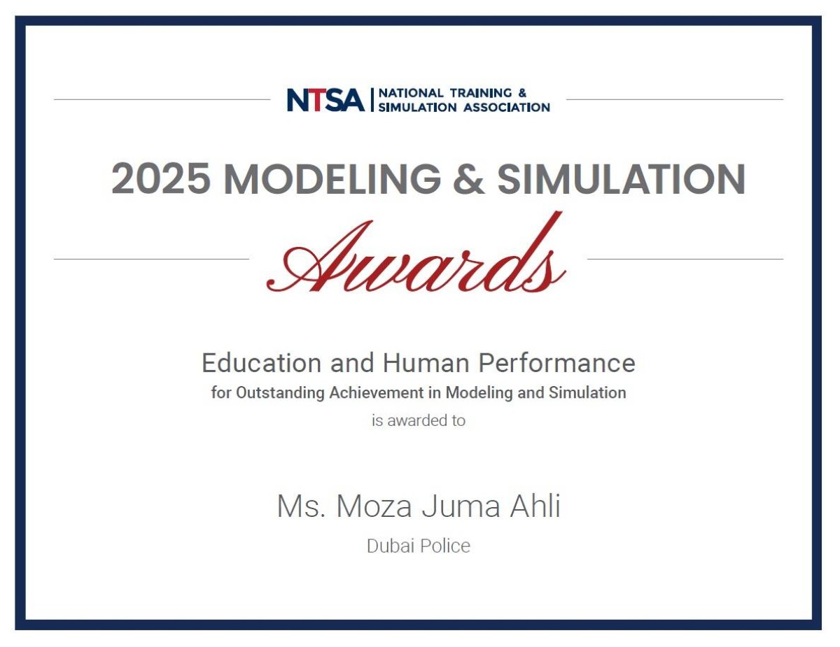 حصدت القيادة العامة لشرطة دبي، ممثلة بإدارة تقييم البرامج في الإدارة العامة للتدريب، جائزة أفضل ممارسة على مستوى العالم في قياس أثر التدريب، في فئة التعليم والأداء البشري لعام 2025، وذلك من الجمعية الوطنية للتدريب والمحاكاة الأمريكية «NTSA»، تقديراً لجهودها الريادية في تطوير وتطبيق نموذج متقدم لقياس أثر التدريب المؤسسي وربطه بمؤشرات الأداء الاستراتيجية والنتائج التشغيلية.