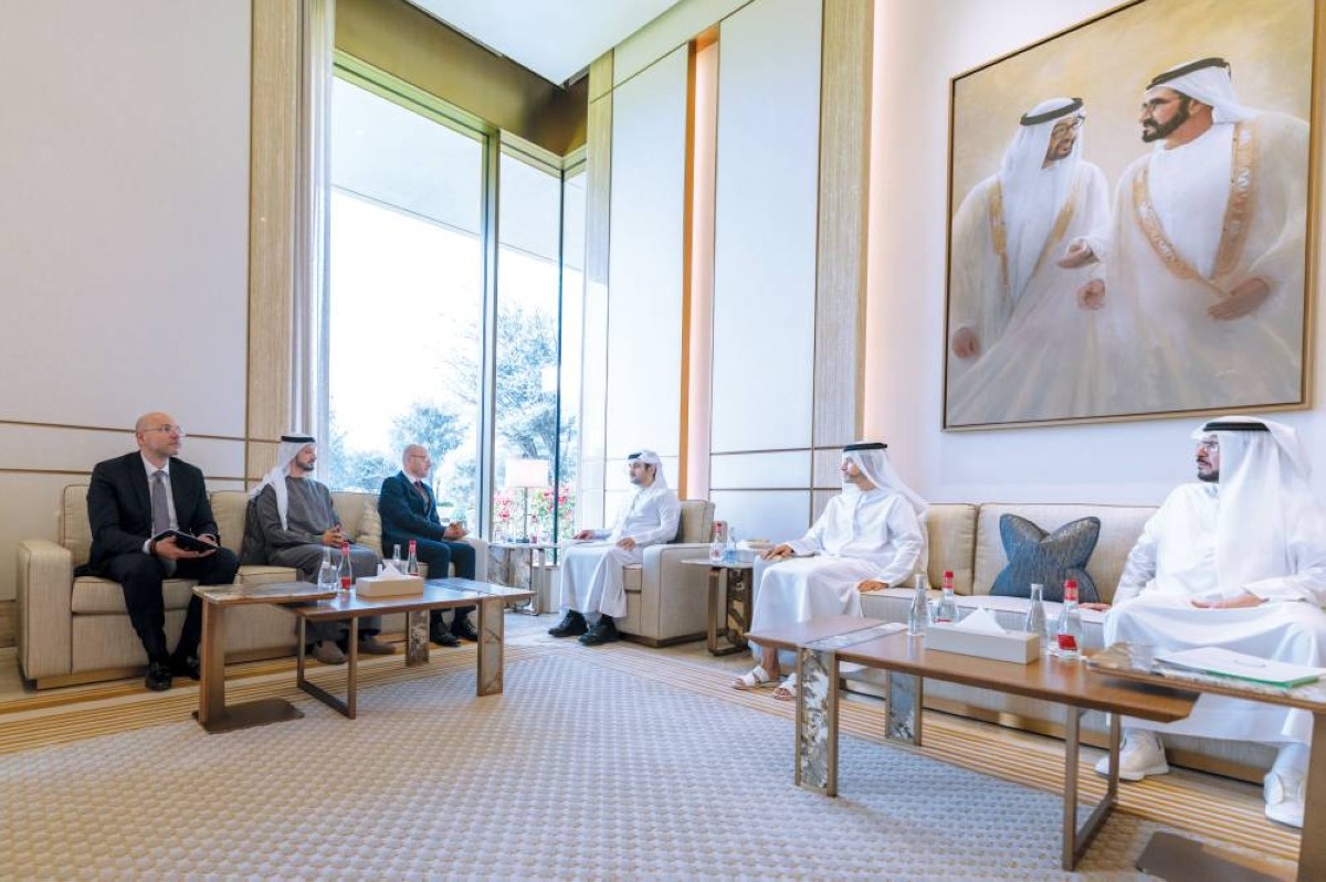 مكتوم بن محمد خلال لقاء كريستيان بروش بحضور محمد الحسيني وسعيد الطاير وهلال المري