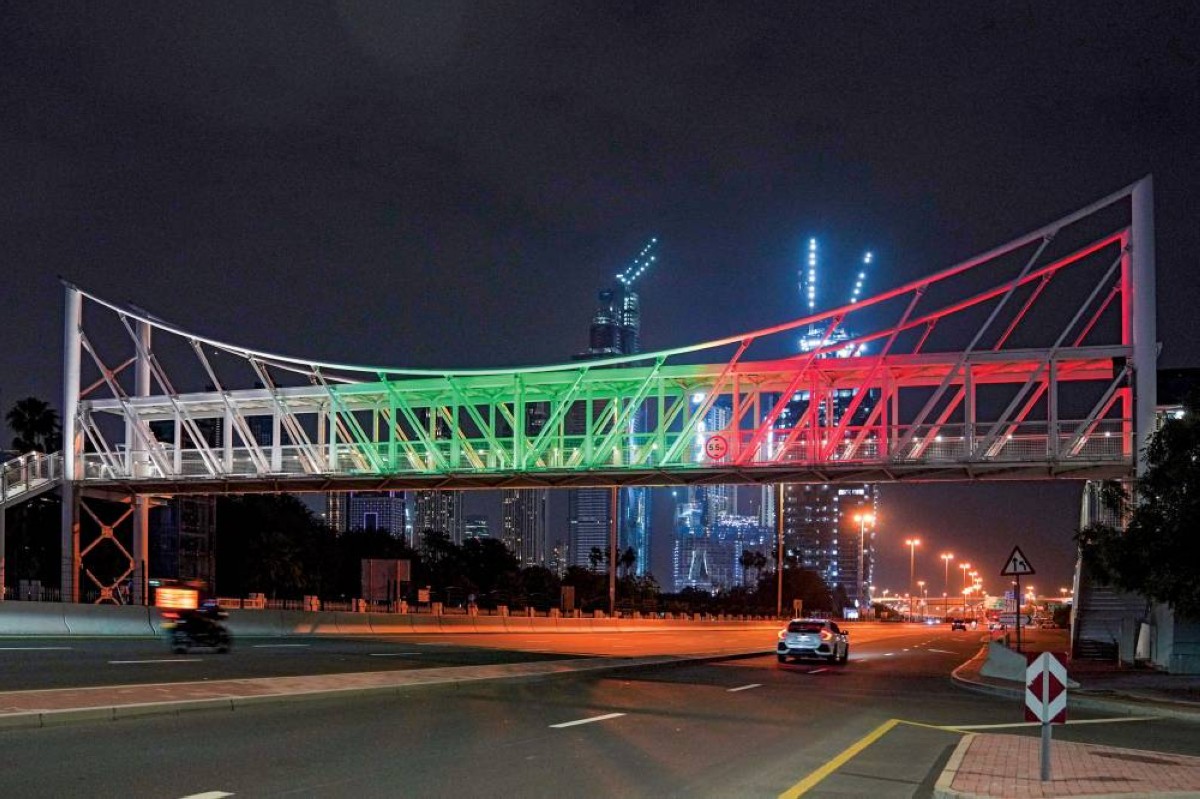 طرق دبي وجسورها تتوشح بألوان العلم