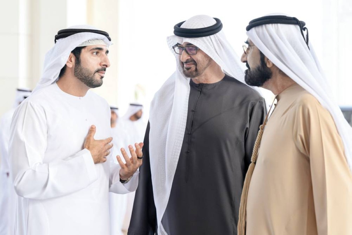 أكد سمو الشيخ حمدان بن محمد بن راشد آل مكتوم، ولي عهد دبي، نائب رئيس مجلس الوزراء وزير الدفاع، أن صاحب السمو الشيخ محمد بن زايد آل نهيان، رئيس الدولة، حفظه الله، وصاحب السمو الشيخ محمد بن راشد آل مكتوم، نائب رئيس الدولة رئيس مجلس الوزراء حاكم دبي، رعاه الله، يمثلان حصن الدار ودرعها المتين، والحزام الذي يشد أزر الوطن ويعزز مسيرته، مشدداً سموه على أن صاحب السمو رئيس الدولة هَرَم عروبتنا وصمّام النظام وقصّـاص العظـام، وأن صاحب السمو الشيخ محمد بن راشد تلميذ المغفور له الشيخ زايد بن سلطان آل نهيان، طيب الله ثراه، وراسم نهضة الإمارات وعـدوّ الانهـزام.