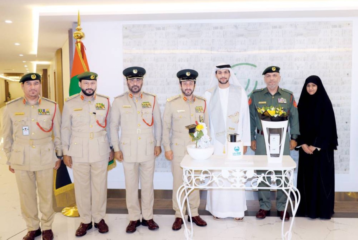 كرم اللواء الدكتور أحمد زعل بن كريشان المهيري، نائب القائد العام لشؤون القطاع المالي والإداري في شرطة دبي، بحضور اللواء علي غانم، مساعد القائد العام لشؤون إسعاد المجتمع والدعم اللوجستي، الطالب المتفوق حميد عادل محمد عبدالله عبيد، نجل العريف عادل محمد، أحد منتسبي شرطة دبي ومن كوادر الإدارة العامة للدعم اللوجستي.