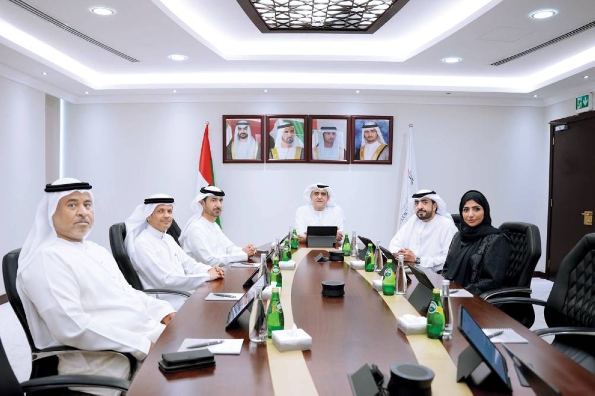 عصام الحميدان وسيف السويدي وأحمد بن مسحار وابتسام البدواوي خلال الاجتماع بحضور أعضاء المجلس