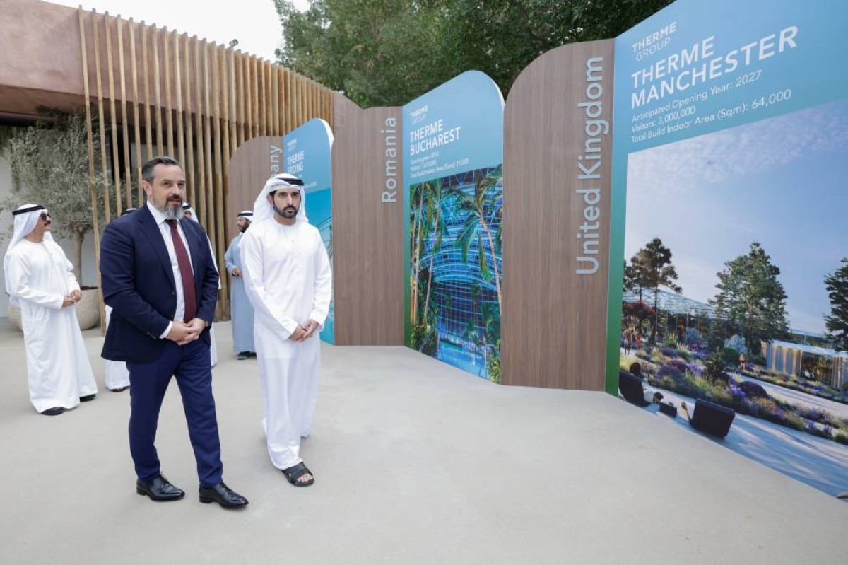 واطّلع سموّ ولي عهد دبي على نموذج للمشروع في موقع الحدث، حيث سيمتد على مساحة 500 ألف قدم مربع ويصل ارتفاعه إلى 100 متر، مع قدرة استيعابية تصل إلى 1.7 مليون زائر سنوياً. يتميز المشروع بمناطق للعلاج الطبيعي وأحواض حرارية متنوعة، وطوابق مخصصة للرفاهية، ومطعم حاصل على نجمة ميشلان، بالإضافة إلى ثلاث شلالات بارتفاع 18 متراً. كما يضم المنتجع تجربة مائية واسعة تشمل4,500 متر مربع من أحواض السباحة الداخلية والمدرجات، وحديقة مائية داخلية تحتوي على 15 منزلقاً، إلى جانب قطع فنية تضفي طابعاً فريداً على تجربة الزائر.