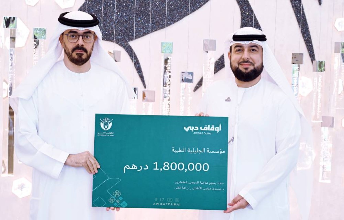 وقُسّم المبلغ المُقدم من «أوقاف دبي»، بواقع مليون درهم لعلاج وزراعة الكلى لمرضى الفشل الكلوي، و800 ألف درهم لدعم برنامج «عاون»، المعني بتوفير الرعاية الطبية للمرضى المقيمين في دولة الإمارات، ممن لا يستطيعون تحمل تكاليف العلاج، و«صندوق الطفل»، الذي يهدف إلى توفير الرعاية الطبية اللازمة للأطفال، وتخفيف الأعباء المالية عن ذويهم.