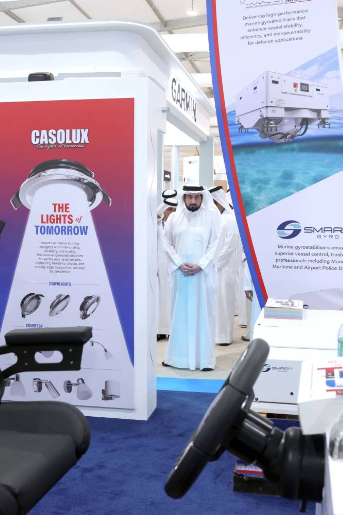 كما تفقّد سموّه جناح شرطة دبي، التي تستعرض أحدث التطورات في مجال الأمن البحري. واختتم سموّه جولته في المنطقة المخصصة لعروض الرياضات المائية، حيث زار شركة Yachts 1، أحد أبرز وكلاء اليخوت والقوارب الفاخرة في الإمارات العربية المتحدة، وشركة Gulf Craft، الشركة الإماراتية الرائدة عالمياً في صناعة اليخوت الفاخرة والقوارب، والتي شهدت إطلاقاً عالمياً لثمانية قوارب.