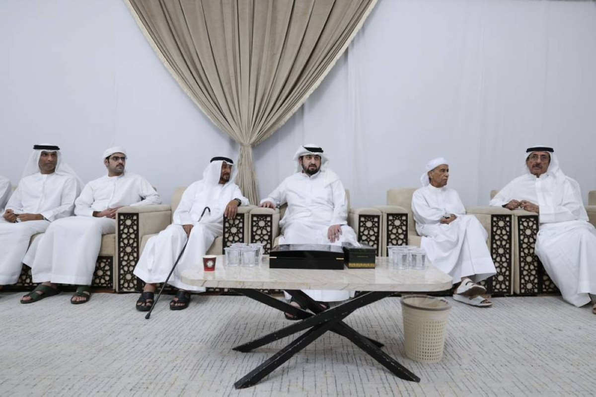 قدّم سموّ الشيخ أحمد بن محمد بن راشد آل مكتوم، النائب الثاني لحاكم دبي، اليوم (الاثنين)، يرافقه سموّ الشيخ حشر بن مكتوم بن جمعة آل مكتوم، رئيس مؤسسة دبي للإعلام، واجب العزاء في وفاة عوشه بنت مكتوم حرم سعادة خليفة جمعة النابوده، ووالدة خالد خليفة النابوده، وذلك خلال زيارة سموّه لمجلس العزاء في دبي.