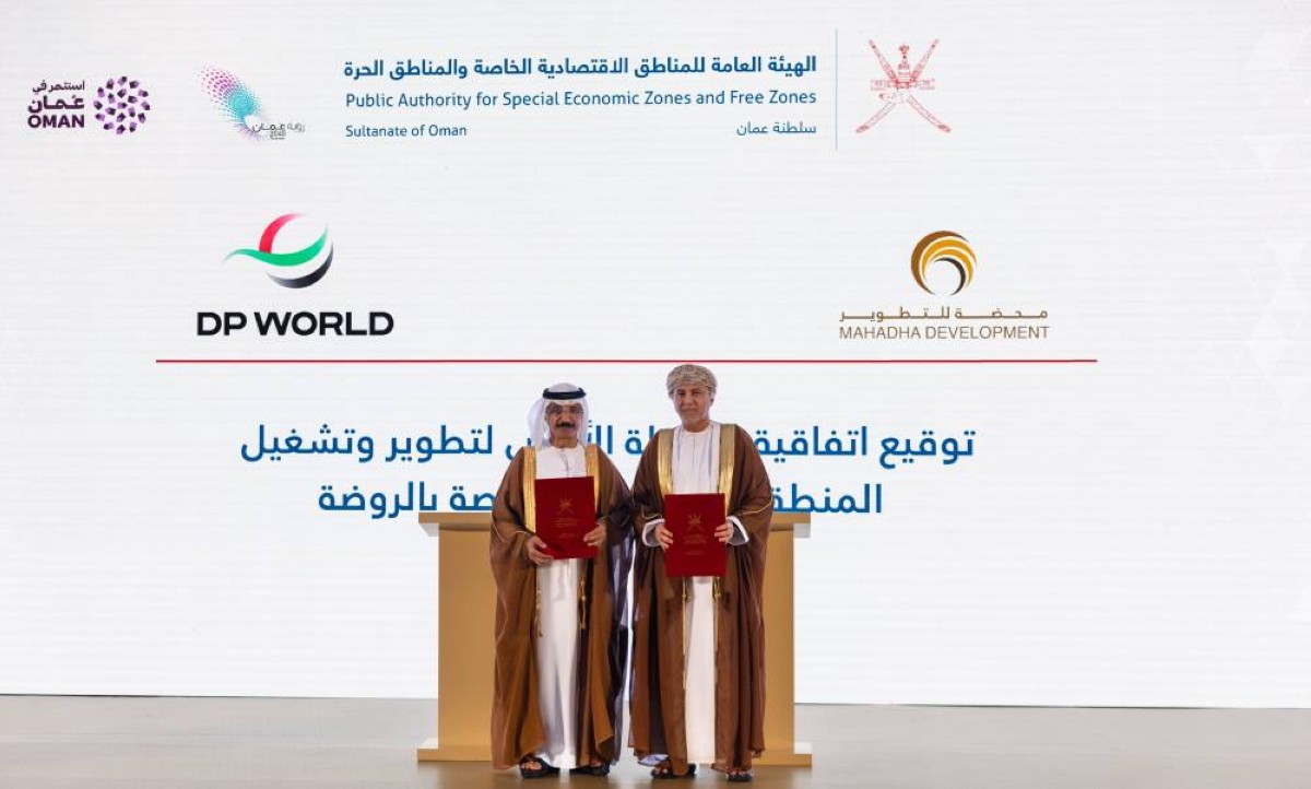وقد وقّع الاتفاقية عن الهيئة العامة للمناطق الاقتصادية الخاصة والمناطق الحرة بسلطنة عُمان المهندس أحمد بن حسن الذيب، نائب رئيس الهيئة، وعن الجانب الإماراتي ممثلاً في شركة محضة للتطوير، سلطان أحمد بن سليّم، رئيس مجلس الإدارة والرئيس التنفيذي لمجموعة موانئ دبي العالمية "دي بي ورلد".
