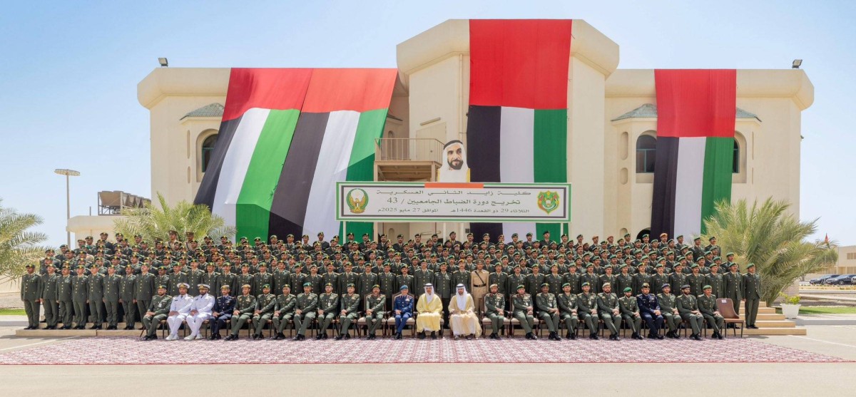 وقال سموه في تدوينة على منصة التواصل الاجتماعي "X": "شهدتُ اليوم حفل تخريج الدورة الـ 43 من الضباط الجامعيين في كلية زايد الثاني العسكرية بمدينة العين، حيث تواصل الكلية دورها الريادي في رفد قواتنا المسلحة بالكفاءات العلمية والخبرات العملية، وتأهيلهم على مختلف المستويات لأداء مهامهم الوطنية بكل كفاءة واقتدار".
