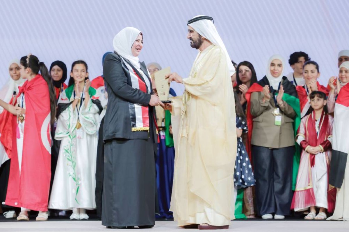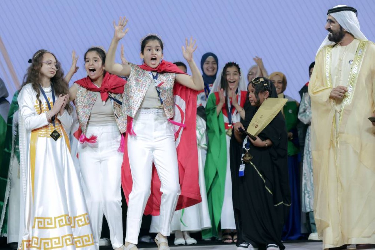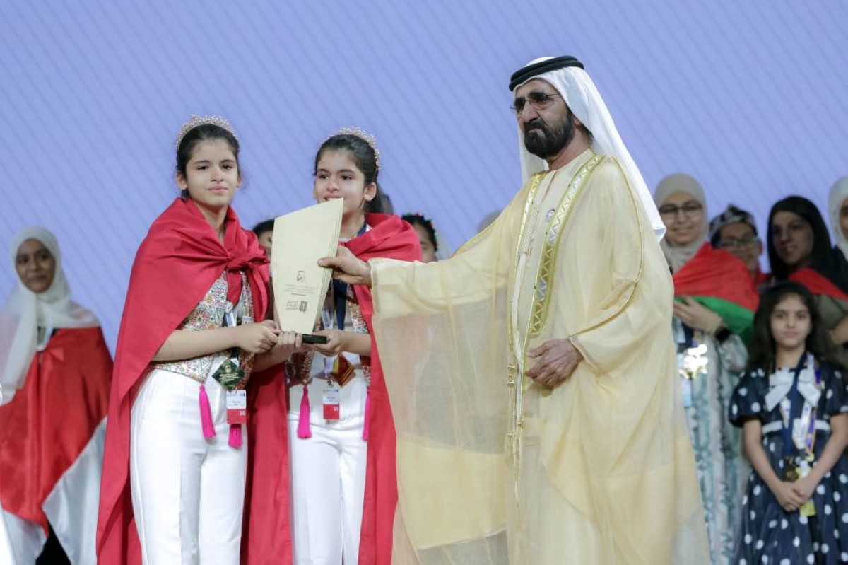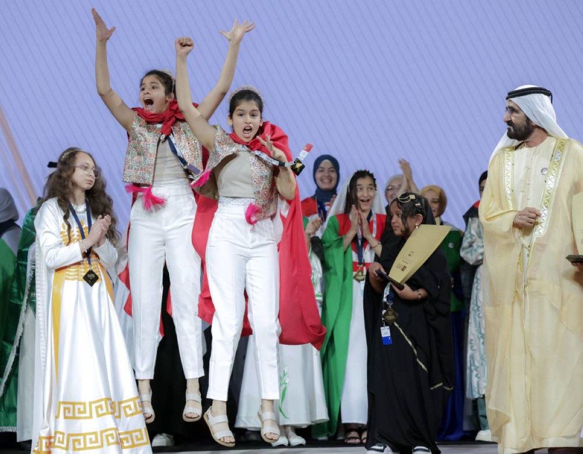 حيث توّج سموه التوأم بيسان وبيلسان كوكة من تونس بطلتين لتحدي القراءة العربي 2025 من بين أكثر من 32 مليون طالب وطالبة من 50 دولة مثلوا 132112 مدرسة وتحت إشراف 161004 مشرفين ومشرفات شاركوا في تصفيات الدورة التاسعة من التظاهرة القرائية الأكبر من نوعها باللغة العربية على مستوى العالم.