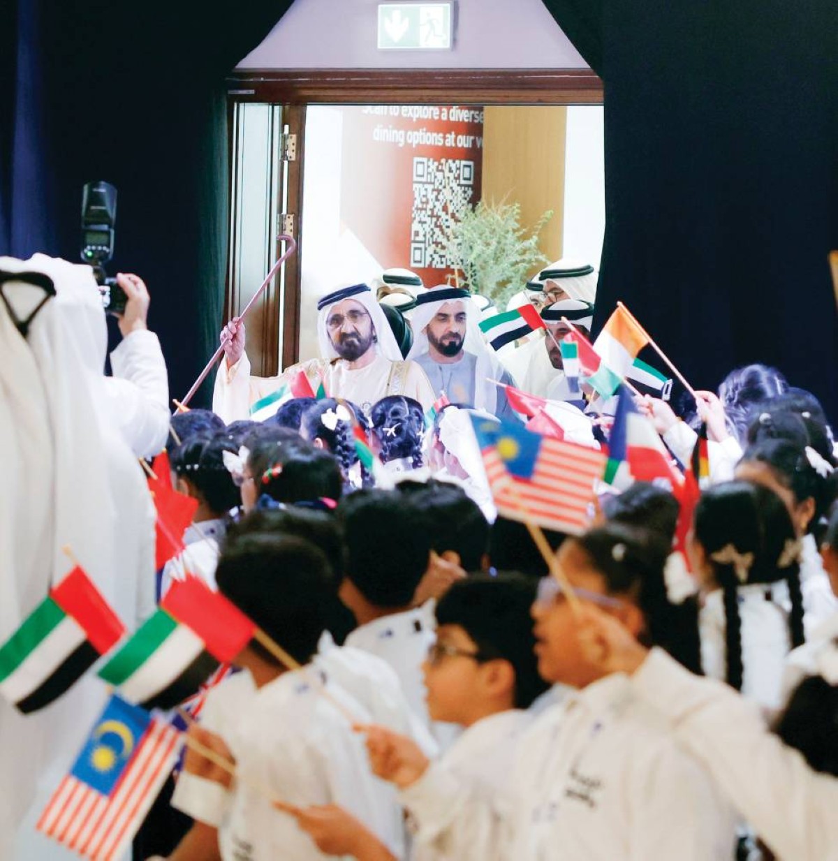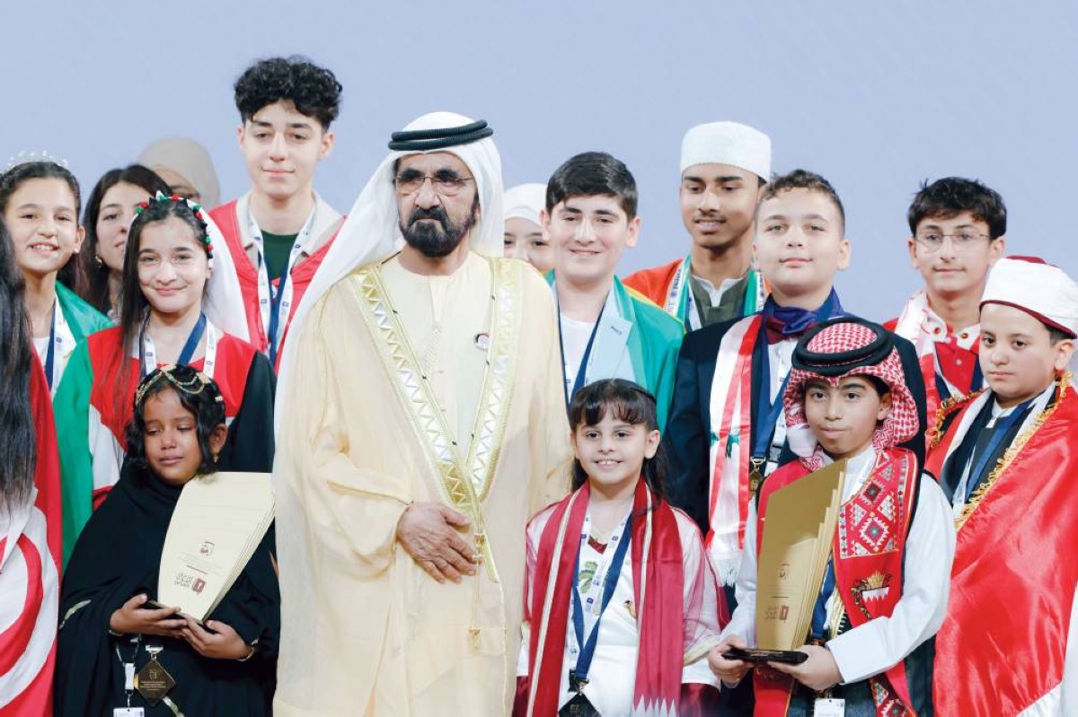 محمد بن راشد متوسطاً الفائزين في تحدي القراء العربي بدورته التاسعة