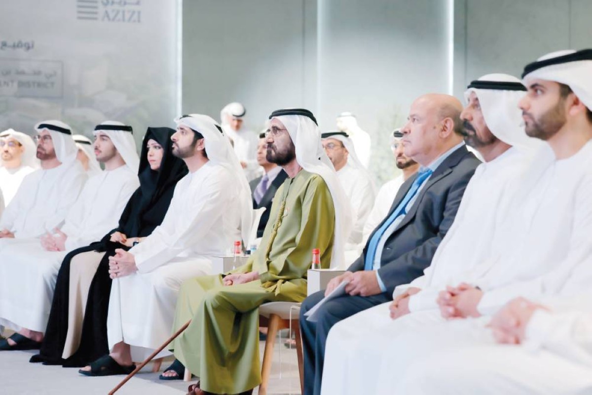 محمد بن راشد يشهد توقيع محمد القرقاوي ومرويس عزيزي اتفاقية تنفيذ المشروع