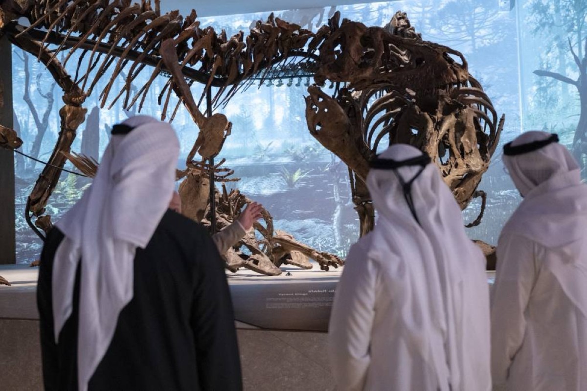 واستهل سموّهما الجولة بزيارة القاعة الرئيسية التي تحتضن أول عرض عالمي لقطيع من الديناصورات العملاقة، التي تقف عند مدخل المتحف لتُجسّد لحظة تاريخية تعود إلى عصور ما قبل التاريخ.