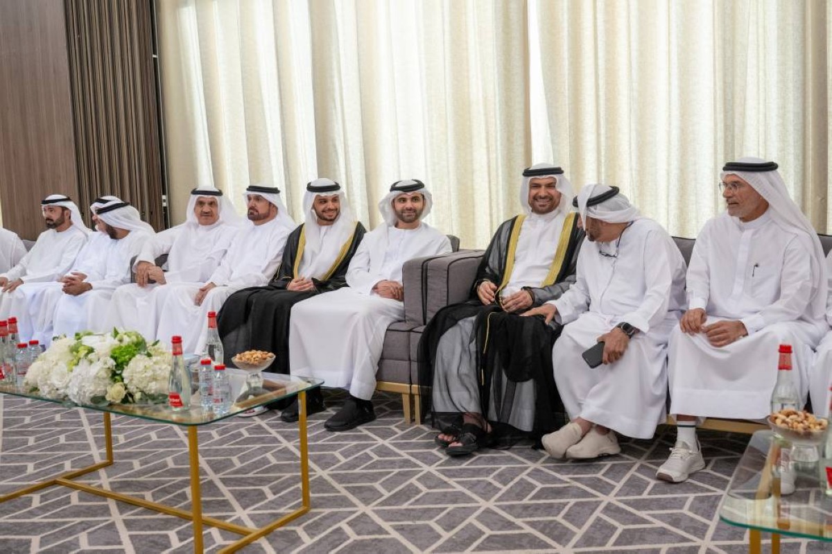حضر سمو الشيخ منصور بن محمد بن راشد آل مكتوم، رئيس اللجنة الأولمبية الوطنية، حفل الاستقبال الذي أقامه د. عدنان عبدالكريم جلفار، أمس، في مجلس أم سقيم بدبي، بمناسبة زفاف نجله حمد على كريمة خالد عيسى بوحميد.