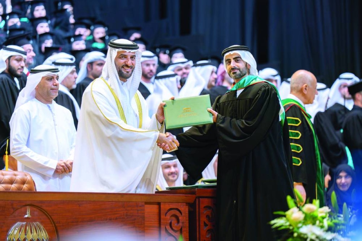 شهد سمو الشيخ سلطان بن أحمد بن سلطان القاسمي، نائب حاكم الشارقة، رئيس جامعة الشارقة، أمس، حفل تخريج طلبة الدراسات العليا لفصل الربيع 2025 بجامعة الشارقة؛ البالغ عددهم 437 خريجاً وخريجة.