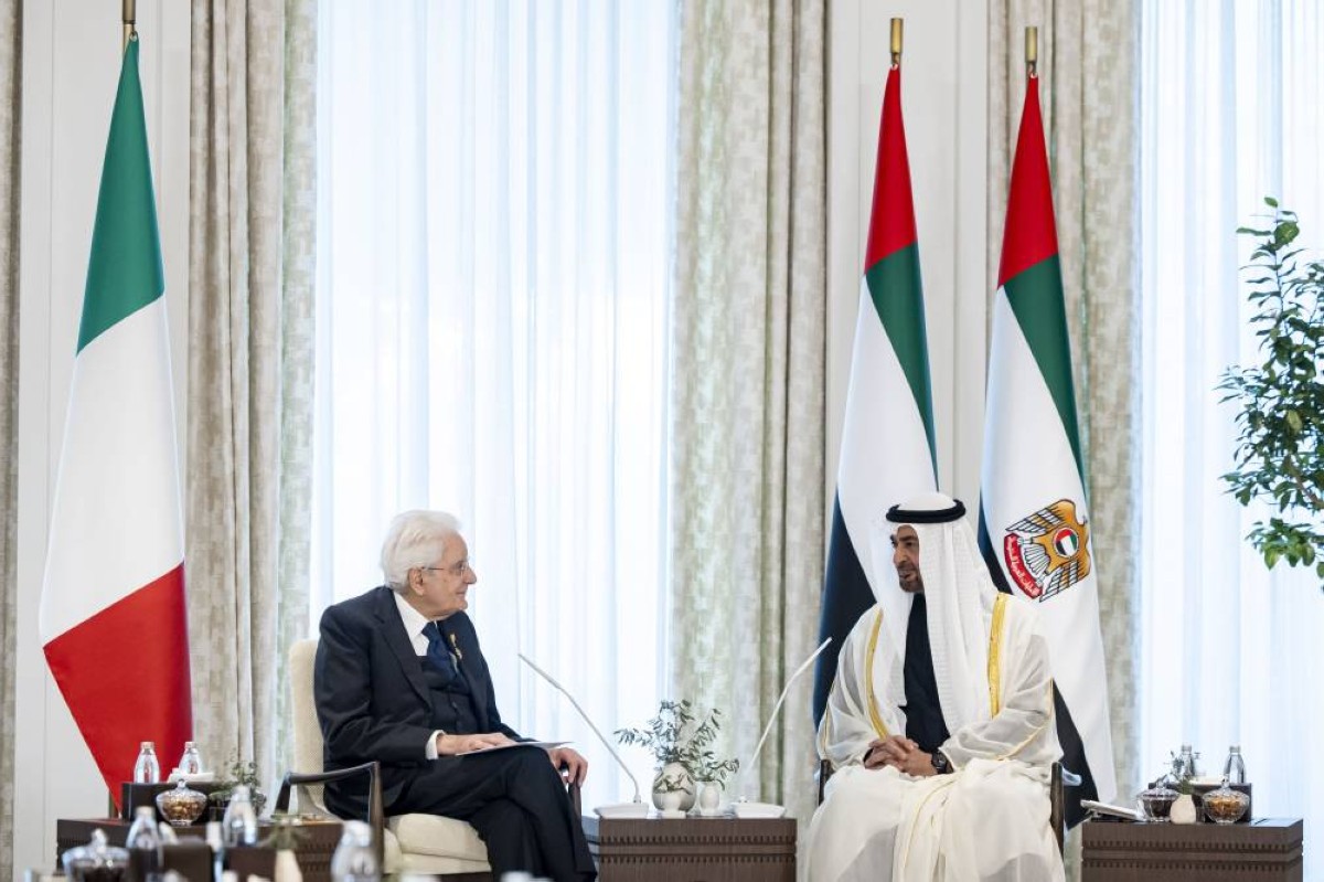بحث صاحب السمو الشيخ محمد بن زايد آل نهيان رئيس الدولة "حفظه الله" وفخامة سيرجيو ماتاريلا رئيس الجمهورية الإيطالية اليوم مسار تطور علاقات التعاون بين دولة الإمارات وإيطاليا في إطار شراكتهما الإستراتيجية والحرص المتبادل على تحقيق أهدافها بما يعود بالنماء والازدهار على شعبيهما.