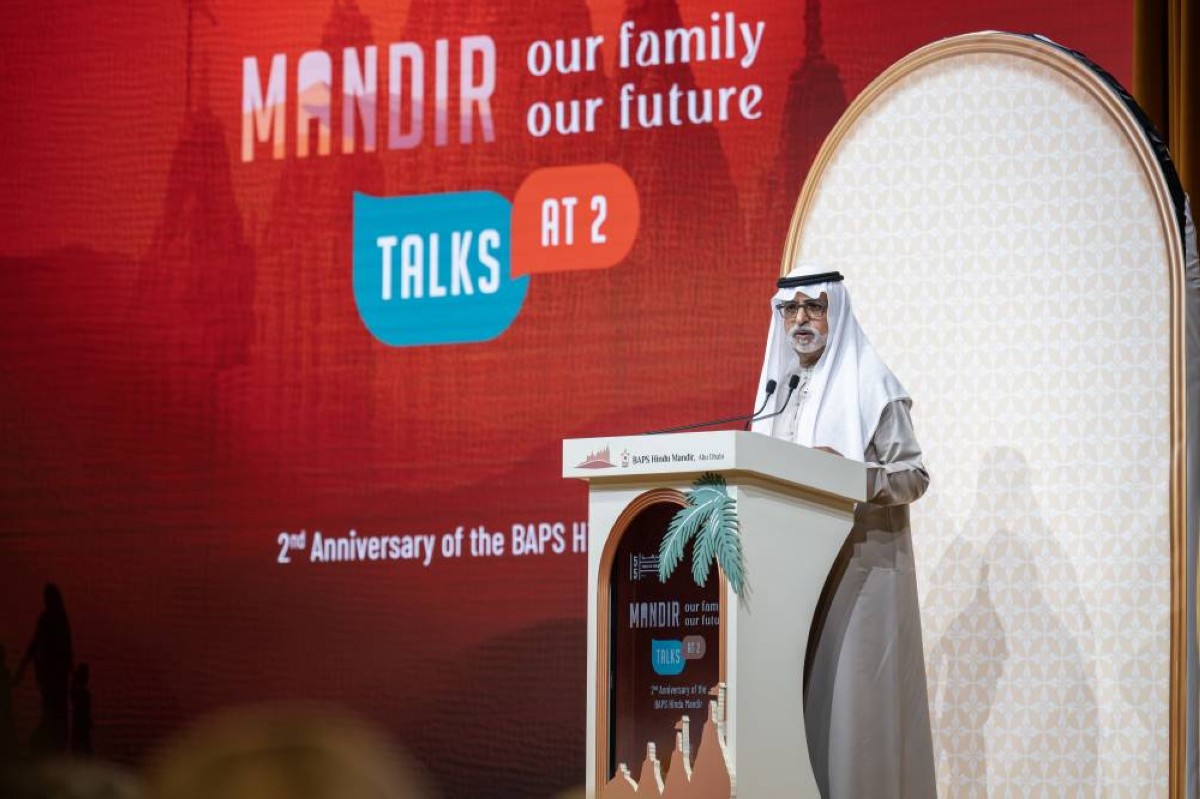 وقال معاليه: «إن هذا المعبد لا يقف فقط كمكان للعبادة، بل كرمز قوي للقيم الإنسانية المشتركة»، مشيراً إلى أنه يجسد التزام الجالية الهندية في أبوظبي بالمبادئ العالمية التي توحد البشرية كأسرة إنسانية واحدة، والمتمثلة في احترام الآخرين، ومحبة الله، وخدمة المجتمع، والمسؤولية تجاه الأجيال القادمة، موضحاً أن هذه القيم ليست مُثُلاً نظرية مجردة، بل هي قيم حية تمارس يومياً في دولة الإمارات.