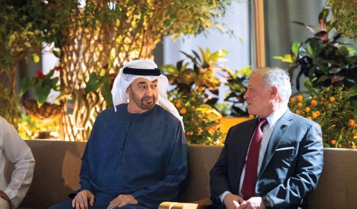 استقبل صاحب السمو الشيخ محمد بن زايد آل نهيان، رئيس الدولة، حفظه الله، أمس، أخاه جلالة الملك عبدالله الثاني بن الحسين، ملك المملكة الأردنية الهاشمية، بحضور صاحب السمو الشيخ محمد بن راشد آل مكتوم، نائب رئيس الدولة رئيس مجلس الوزراء حاكم دبي، رعاه الله، وسمو الشيخ منصور بن زايد آل نهيان، نائب رئيس الدولة نائب رئيس مجلس الوزراء رئيس ديوان الرئاسة.