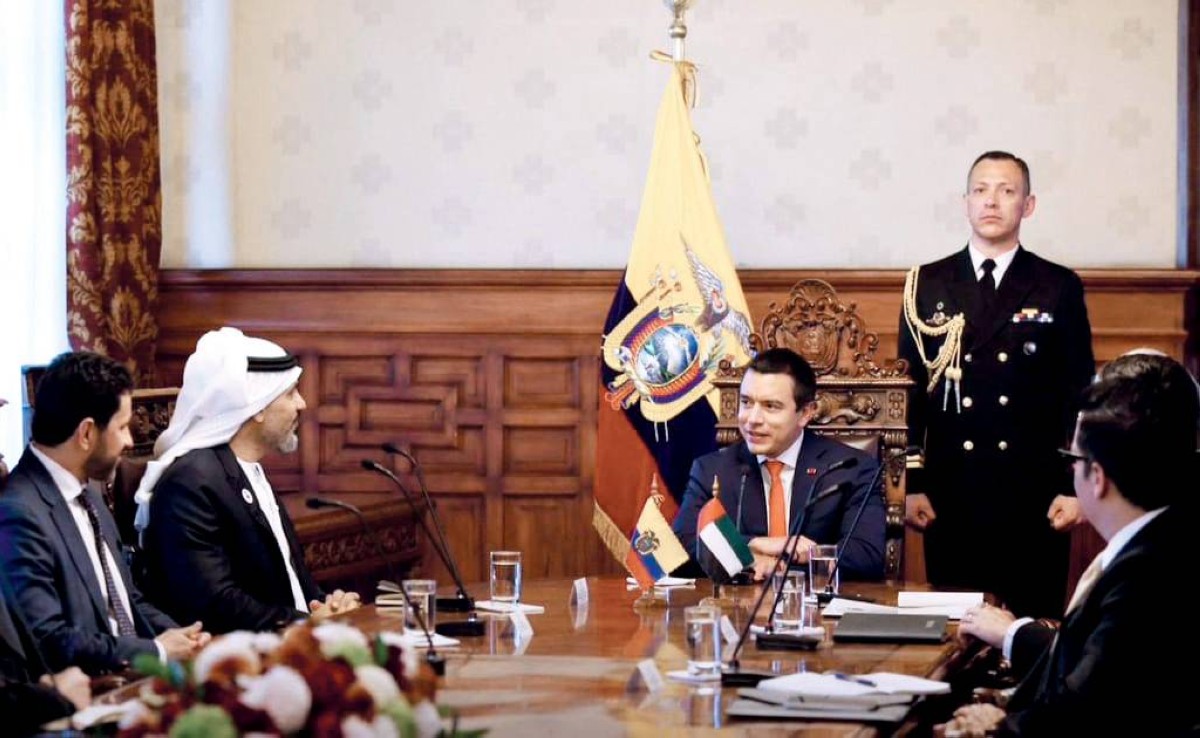استقبل دانيال نوبوا، رئيس جمهورية الإكوادور، معالي حميد عبيد أبوشبص، رئيس جهاز الإمارات للمحاسبة، وذلك ضمن زيارة رسمية لوفد الجهاز إلى جمهورية الإكوادور، بهدف بحث سبل تعزيز التعاون وتبادل الخبرات في مجالات الرقابة والنزاهة، ومكافحة الفساد.