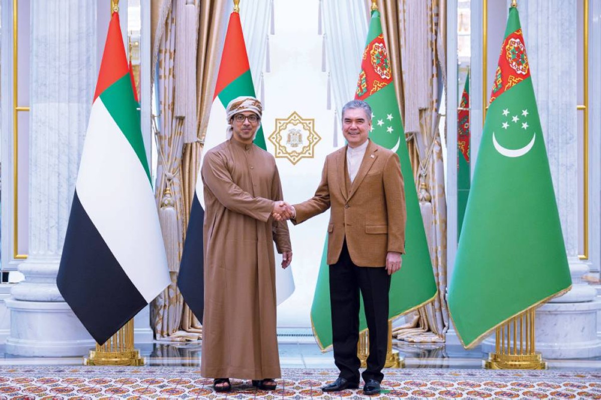 وكان سمو الشيخ منصور بن زايد آل نهيان قد وصل إلى جمهورية تركمانستان في وقت سابق من أمس وكان في استقباله فخامة قربان قولي بردي محمدوف، الزعيم الوطني للشعب التركماني ورئيس مجلس الشعب بجمهورية تركمانستان.