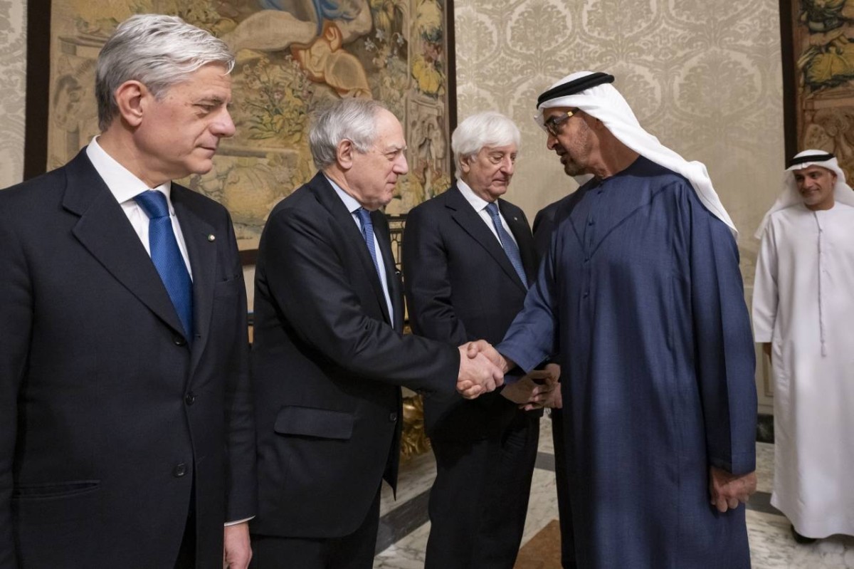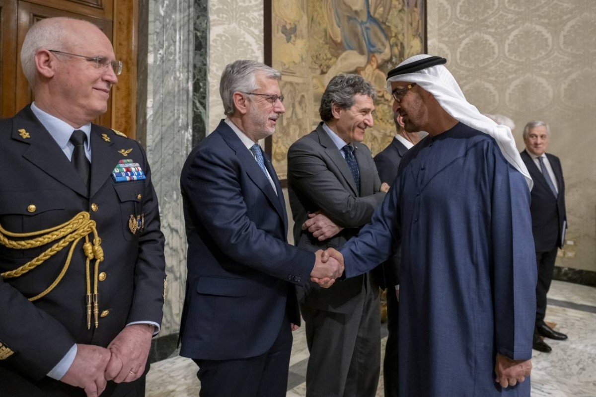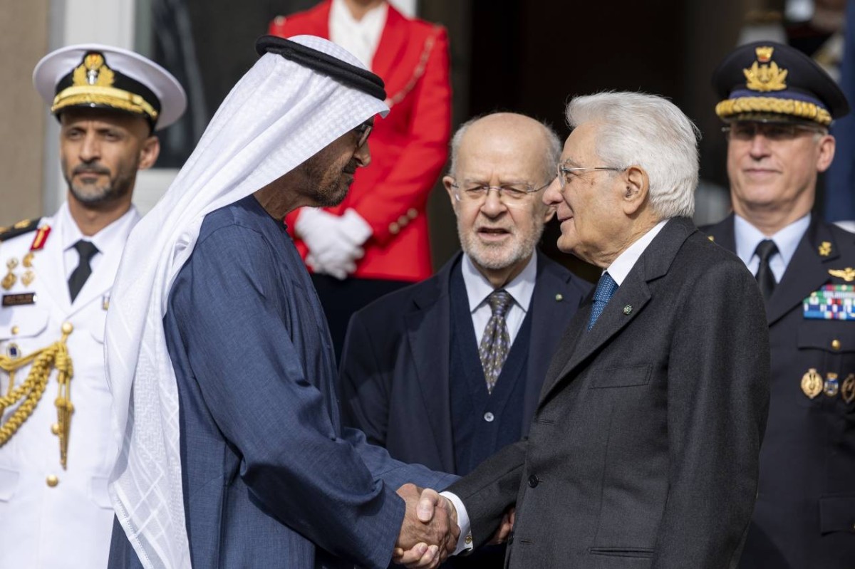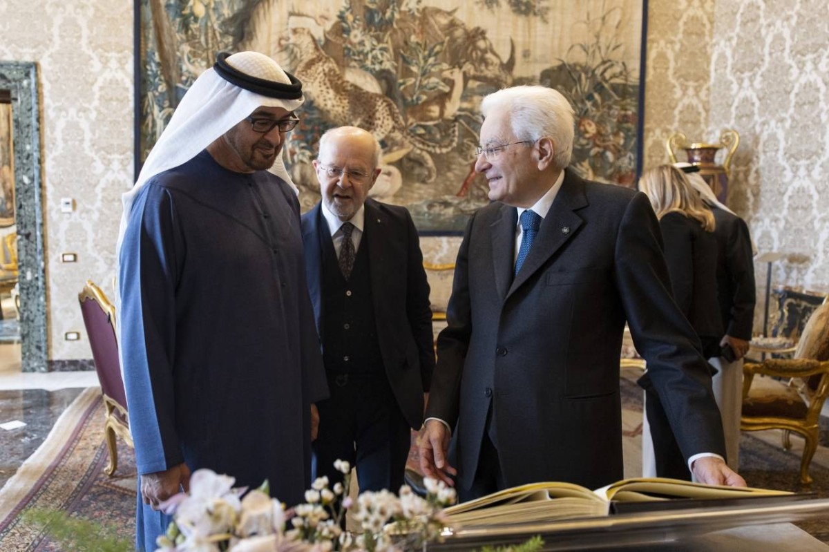 وكان صاحب السمو الشيخ محمد بن زايد آل نهيان رئيس الدولة «حفظه الله» حضر أول أمس مأدبة العشاء التي أقامها سيرجيو ماتاريلا رئيس الجمهورية الإيطالية تكريماً لسموه والوفد المرافق .. وذلك في إطار «زيارة دولة» التي قام بها سموه إلى إيطاليا. ورحب الرئيس سيرجيو ماتاريلا بزيارة سموه إلى إيطاليا، مؤكداً عمق العلاقات التي تجمع البلدين وتطلعهما إلى مزيد العمل المشترك لتعزيز تعاونهما لما يعود بالخير على شعبيهما.