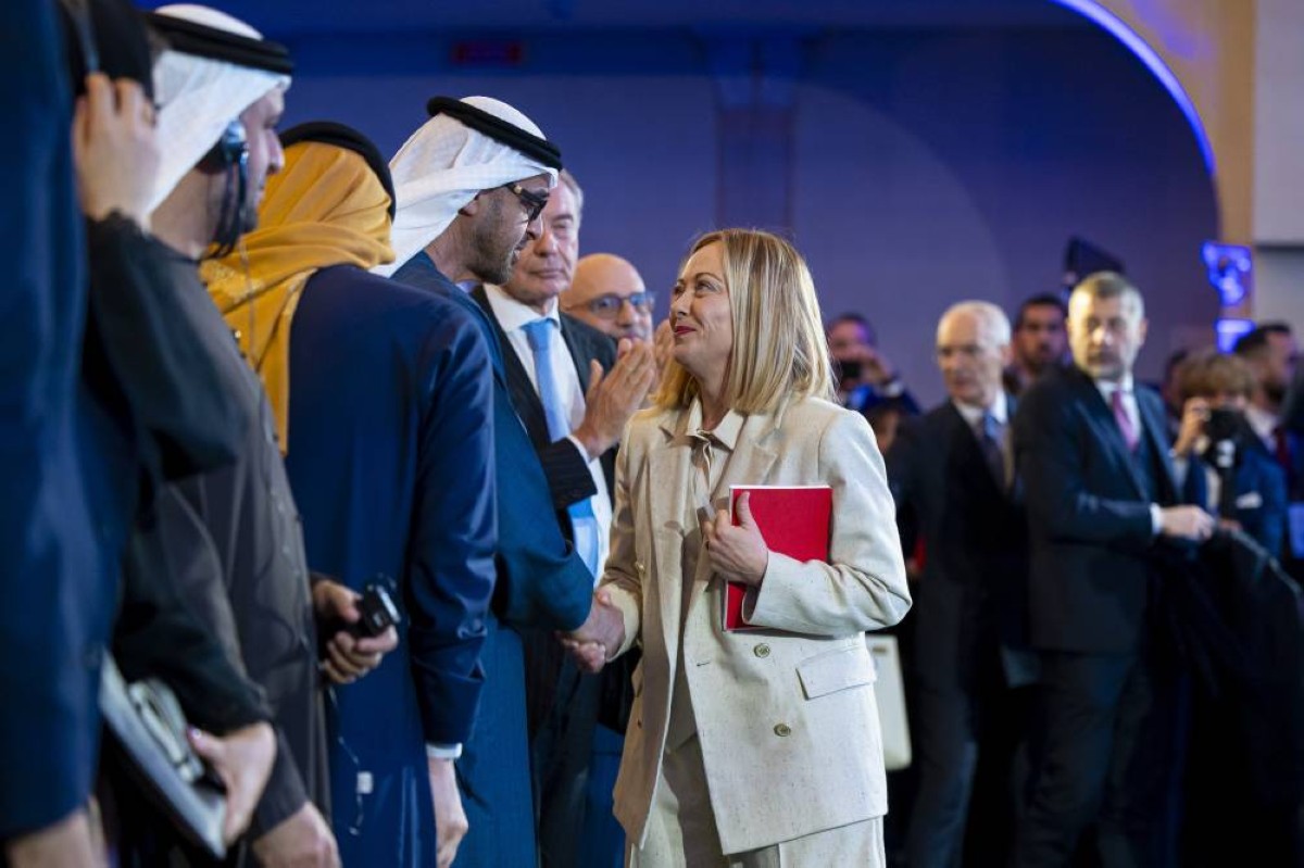 شهد صاحب السمو الشيخ محمد بن زايد آل نهيان، رئيس الدولة، حفظه الله، وجورجا ميلوني، رئيسة وزراء الجمهورية الإيطالية، أمس، جانباً من فعاليات «منتدى الأعمال الإماراتي - الإيطالي».