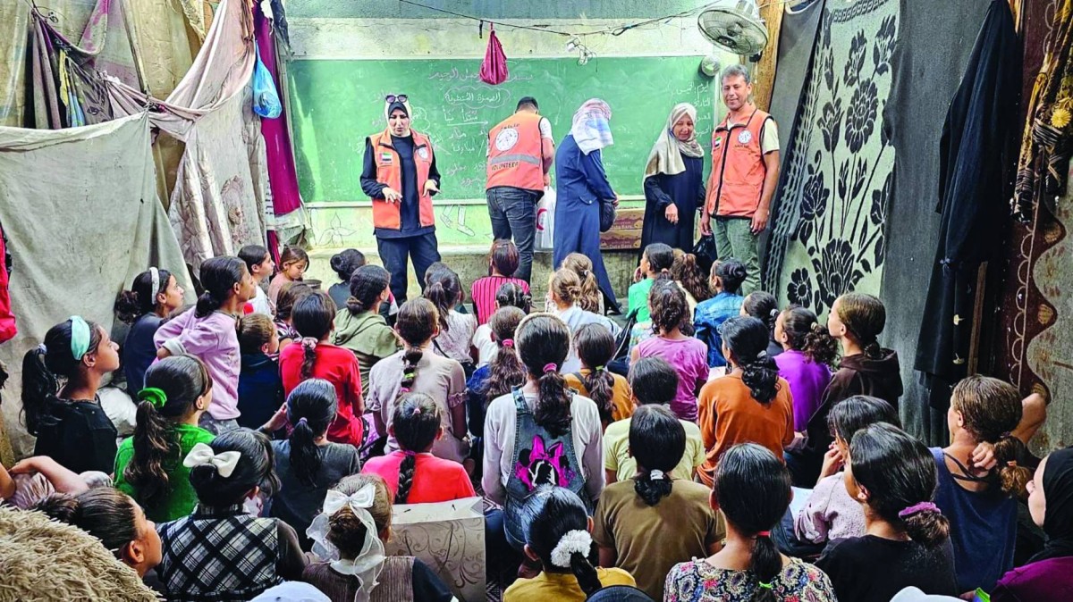 توزيع حقائب مدرسية على طلبة «مدرسة مرمرة» في رفح