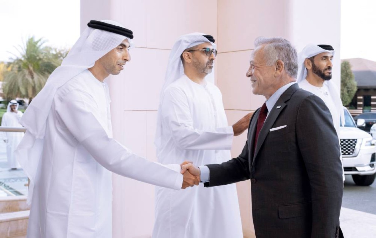 جاء ذلك خلال لقاء صاحب السمو رئيس الدولة أخاه جلالة الملك عبدالله الثاني بن الحسين في قصر البطين في أبوظبي، الذي يقوم بزيارة أخوية إلى دولة الإمارات.
