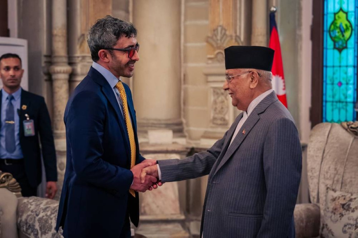 التقى سمو الشيخ عبدالله بن زايد آل نهيان، نائب رئيس مجلس الوزراء وزير الخارجية، اليوم معالي كي بي شارما أولي، رئيس وزراء نيبال، وذلك خلال زيارة عمل يقوم بها سموه إلى كاتماندو.