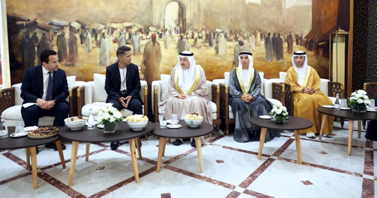 صقر غباش خلال لقائه أندرونيكو رودريغيز في الرباط بحضور وفدي البلدين